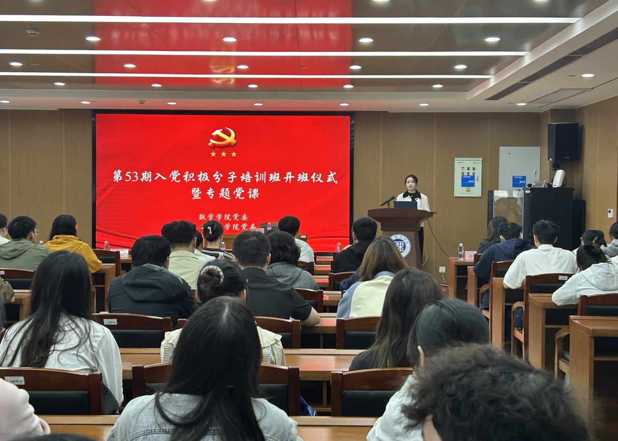 11月4日下午,信誉最好的十大体育平台与人工智能公司在第17102会议厅联合举办第53期入党积极分子培训班开班仪式暨专题党课。公司党委委员、组织部部长胡文静应邀出席并讲授专题党课。数学公司党委书记江五元、人工智能公司党委书记贺波彬、数学公司党委副书记万娟霞出席活动。两院组织员、各支部书记,第23期发展对象及第53期入党积极分子参加培训。
