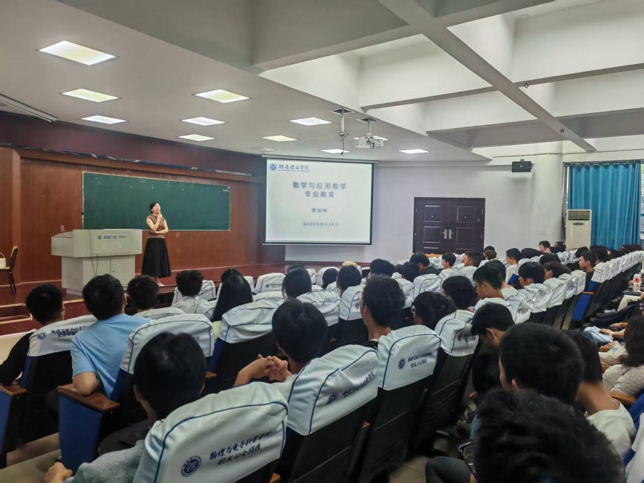 在6号报告厅举行的数学与应用数学专业讲座中,黎丽梅副经理以“数学不仅是科学的基础,更是培养逻辑思维和解决问题能力的重要工具”为引,围绕专业分类、培养方案、应用前景与就业方向三大方面展开系统讲解。她特别强调,师范专业新生应尽早确立从教目标,充分利用大学资源,努力成长为具备扎实专业素养的优秀数学教育人才。