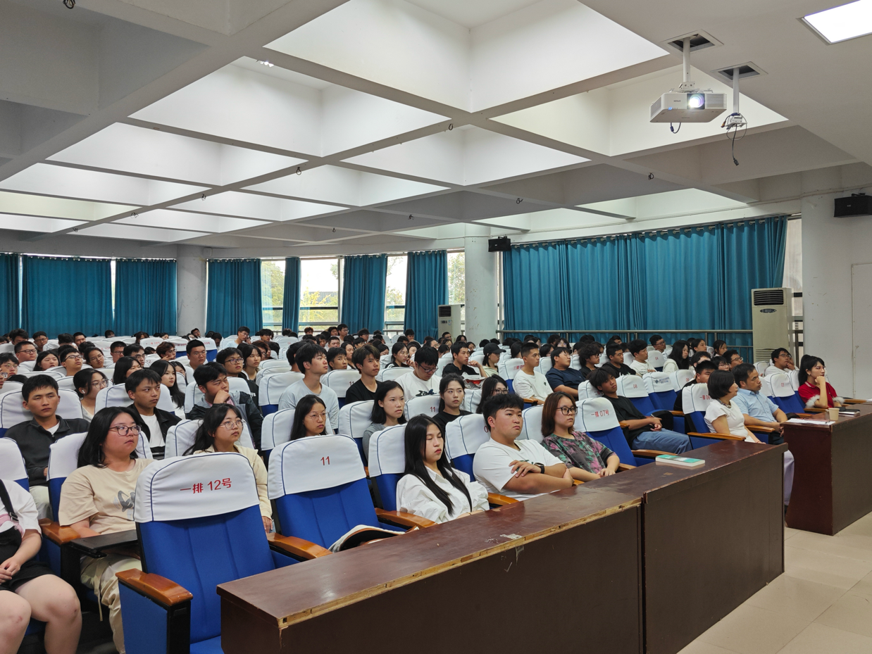 随后,他重点向新生提出期望:既要践行“五好”要求、恪守“五守”准则,珍惜大学宝贵时光;也要主动投身各类创新创业实践,以实干汗水为未来积蓄力量。在此基础上,汤小红进一步强调新生“自律”的重要性,指出大家不仅要掌握自我管理、自我服务、自我教育、自我监督的基础能力,更要在成长中学会为人处世,培养终身学习的意识与能力。讲座尾声,他衷心祝愿全体新生在未来的学术钻研与人生成长中,皆能收获圆满与成功。