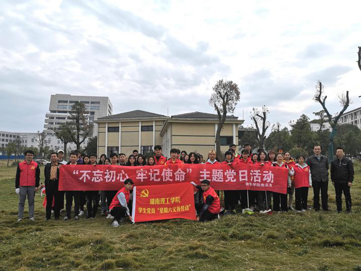 活动开始前,支部对参加人员进行分组,设立小组长。各组由组长带领,根据工作任务展开活动。活动中,员工党员和入党积极分子在教师党员的带领下,准时到达指定区域分组进行义务劳动。师生共同清理阳光草坪上的垃圾和杂草,同学们自备工具,认真清扫5栋教学楼各层栏杆走廊、楼梯门窗、周边绿化带。