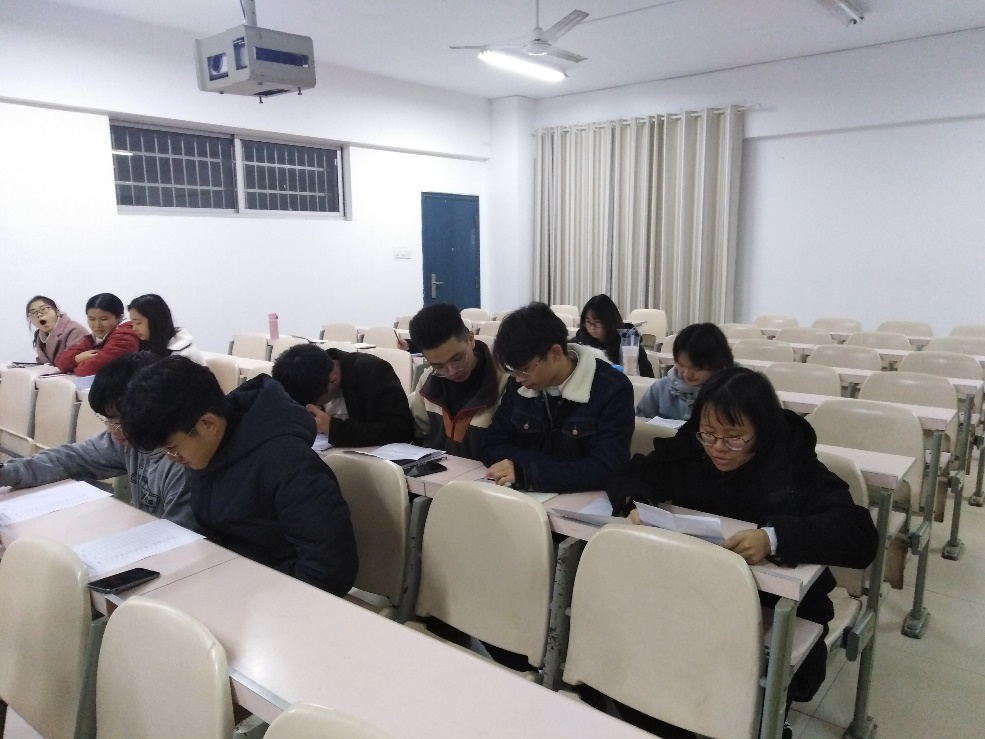 随后支部全体党员分为应数和信计专业小组,分别在5307和5312开展批评与自我批评。全体党员分别从主题教育所得、党员义务、党内组织生活准则、发挥先锋模范作用、紧密联系群众、工作作风等方面检视自身问题,寻找自身差距,提出改进措施。批评与自我批评环节结束后,全体正式党员进行党员测评并接受群众测评,最终,杨娜、罗倩、粟琳涵三名同志为优秀等级,其他正式党员为合格,其余预备党员不评议等级。