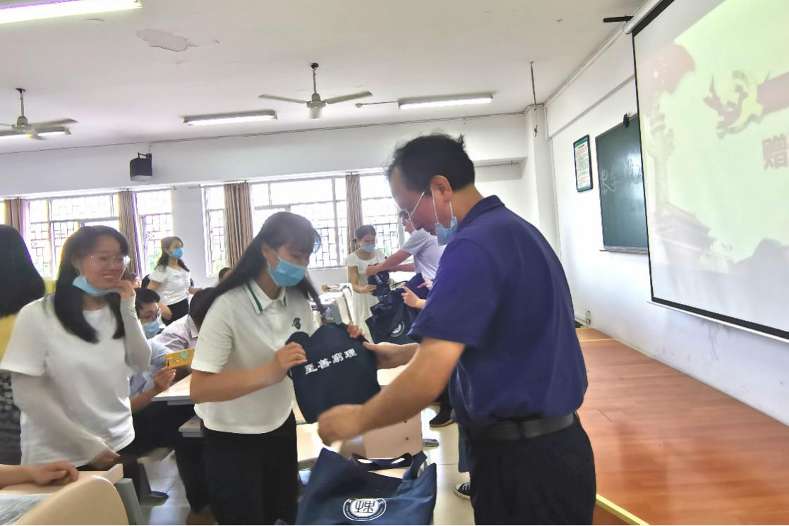随后,孙明保同志和易政群同志为全体毕业生全员赠送行囊。行囊里有一本党费证,一本党章,一本《大国精神》及一份倡议书。行囊是公司对各位毕业生党员最后的叮咛,激励他们不忘初心,牢记使命,勇往前行。各位毕业生党员双手接过行囊,脸上洋溢着灿烂的笑容,纷纷表示定不辜负公司寄予的厚望。