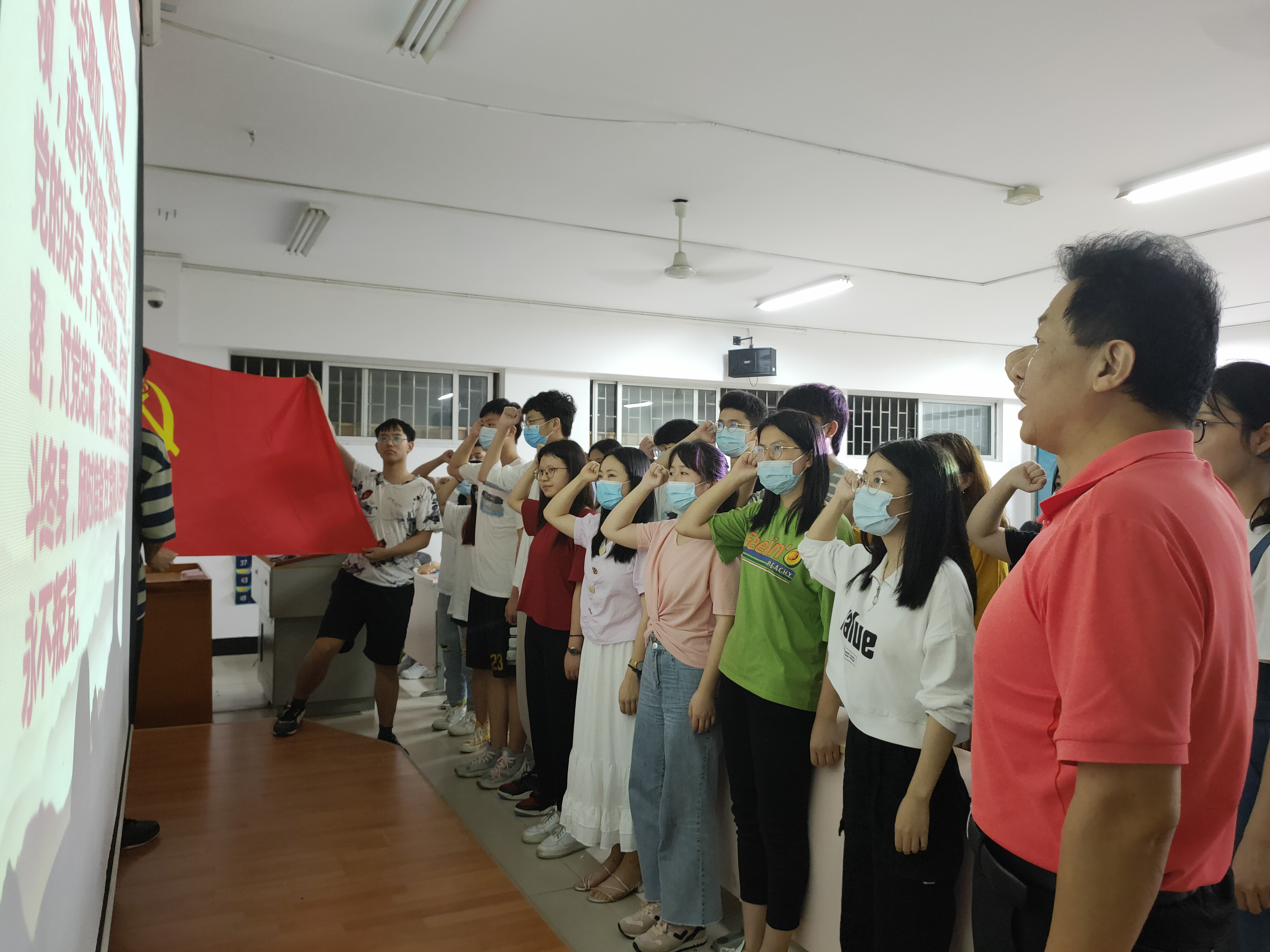 观影结束后,在党委副书记易政群同志的领誓下,全体党员面对鲜红的党旗,庄严地重温入党誓词。“我志愿加入中国共产党,拥护党的纲领,遵守党的章程,履行党员义务,执行党的决定……”全体党员神情庄重地许下对党和人民的承诺,字字铿锵有力,表达了为党的事业奋斗终身的决心。