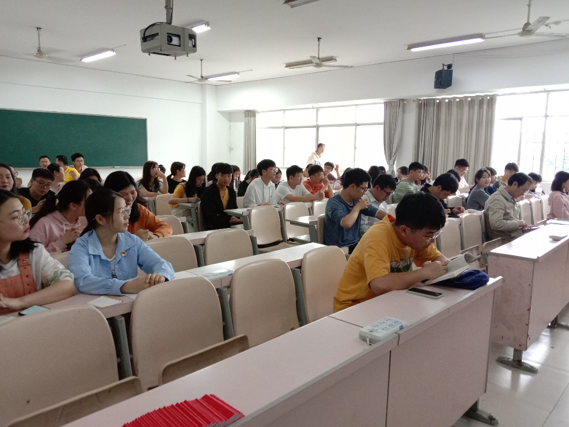 本站讯 5月25日15:30于5304教室,数学公司党委成功开展了“党章进行囊,信仰伴我行”毕业生党员教育大会。数学公司党委书记孙明保,党委副书记、副经理江五元,党委副书记易政群出席。全体教师党员以及毕业班党员参加。本次教育大会主要有重温入党誓词,赠送信仰礼包,孙明保讲党课等流程。