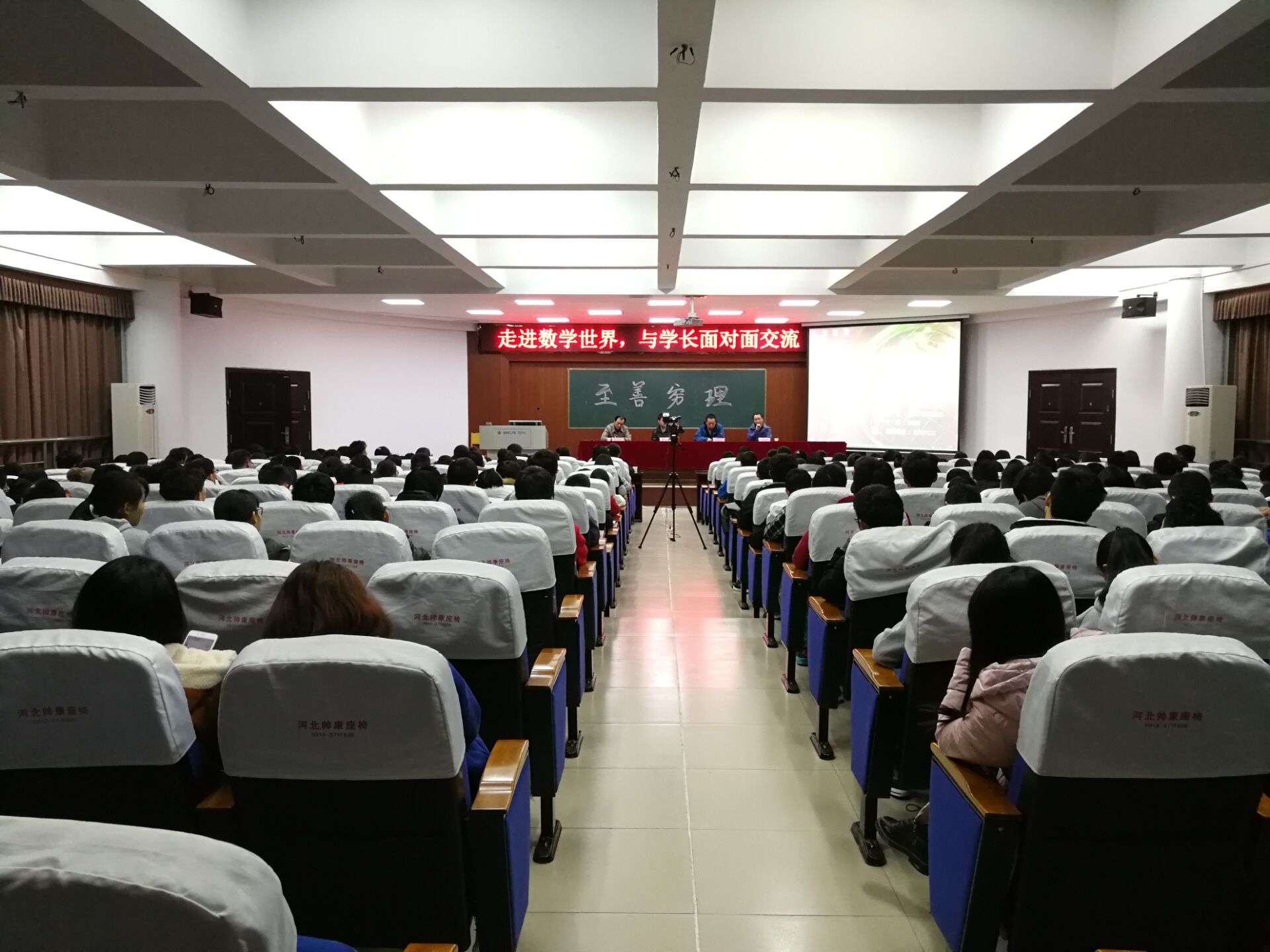 2017年12月1日晚上19点30,2000级优秀员工刘创业,王佳伏,谢宝华于6栋学术报告厅举行“走进数学世界,与学长面对面交流会”主题讲座。信誉最好的十大体育平台经理孙明保,党总支书记阳鲁平出席,2017级全体员工参加讲座。