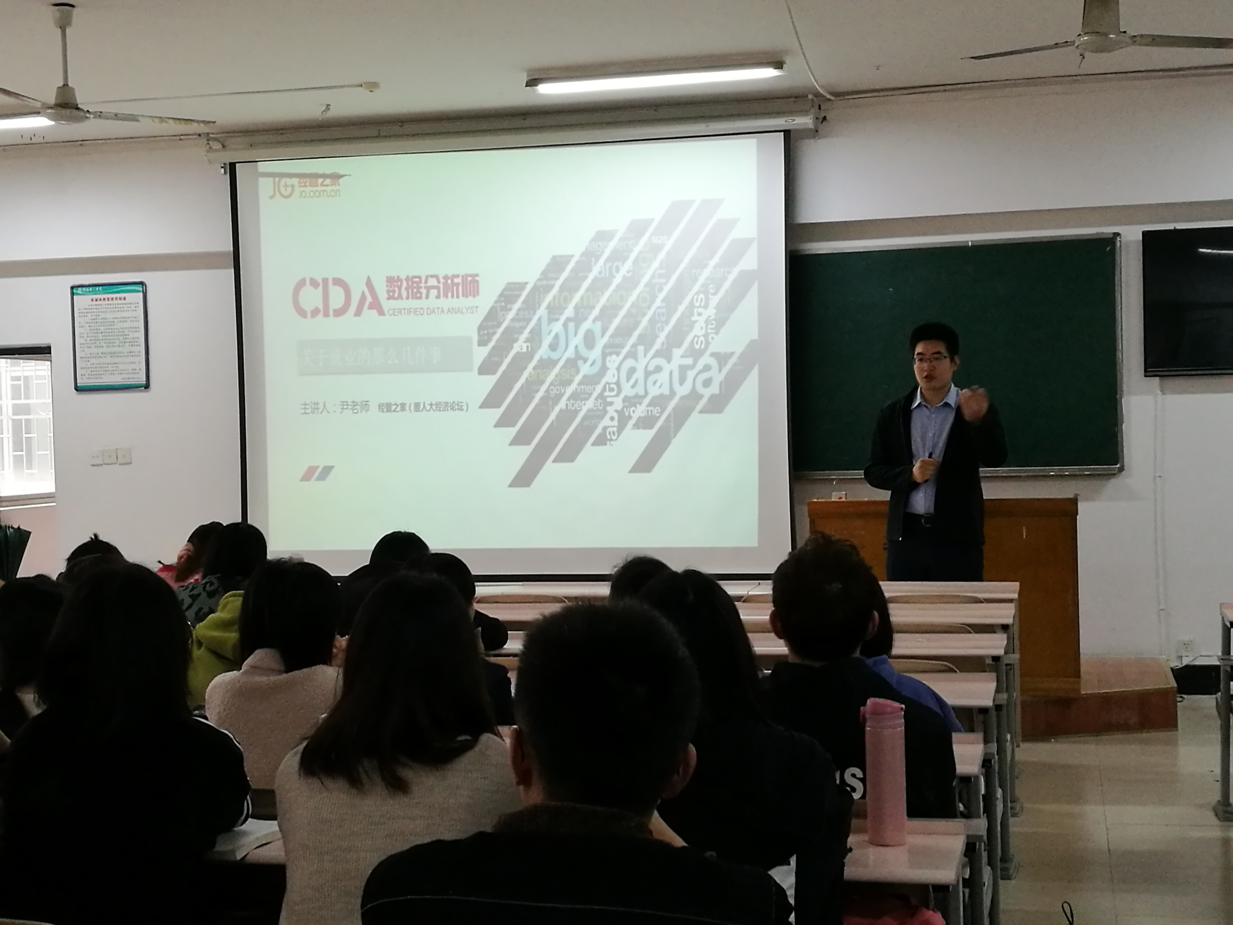 4月3日上午10点在5308教室,针对信息与计算科学专业数据统计分析方向发展,邀请经管之家校企合作总监尹其斐先生来公司讲学,就数据分析行业发展从以下几个方面进行介绍。