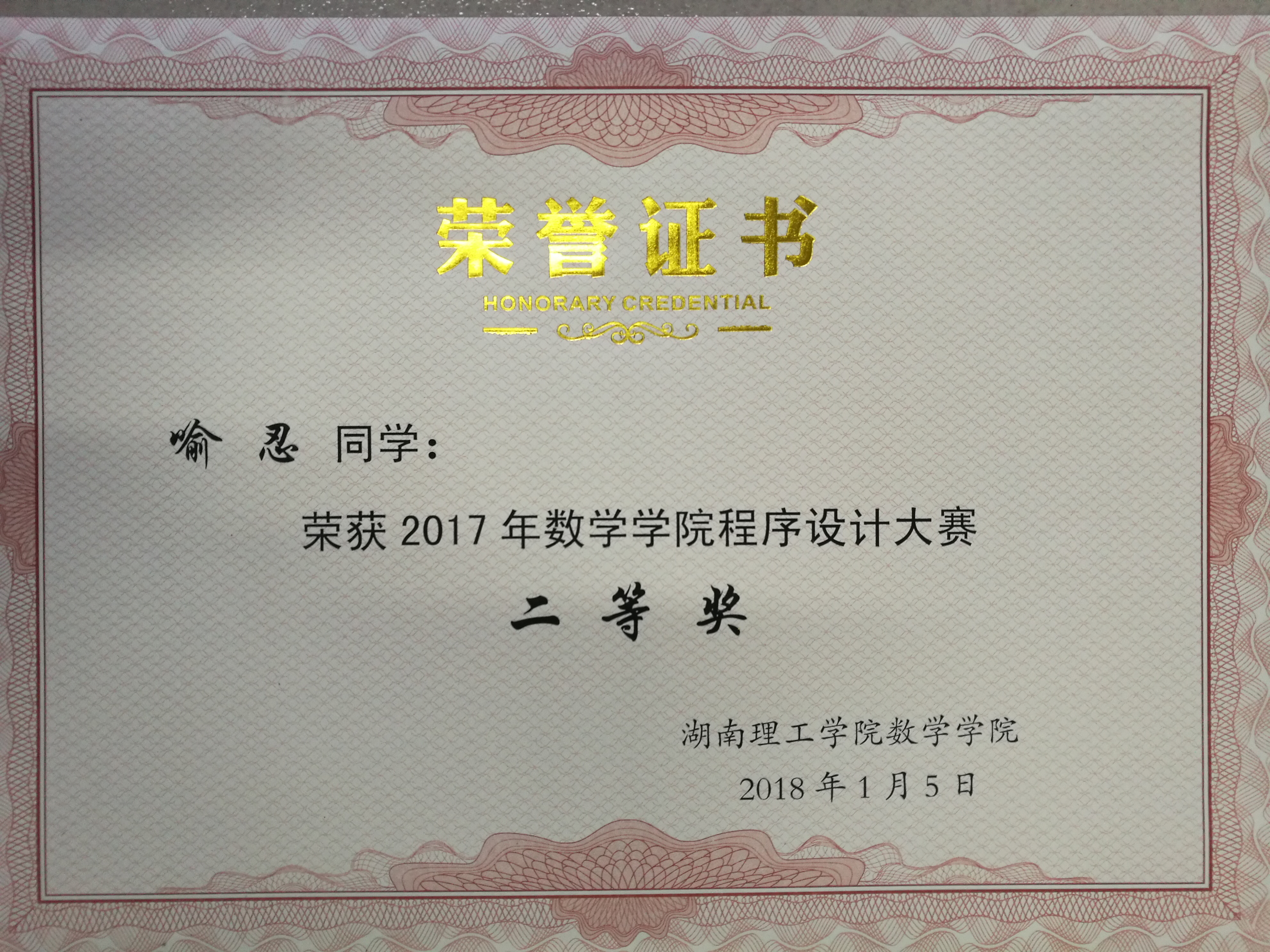 面向2016级信息与计算科学专业开展程序设计大赛,黄威等8位同学分别获程序设计大赛一、二、三等奖,具体获奖如下: