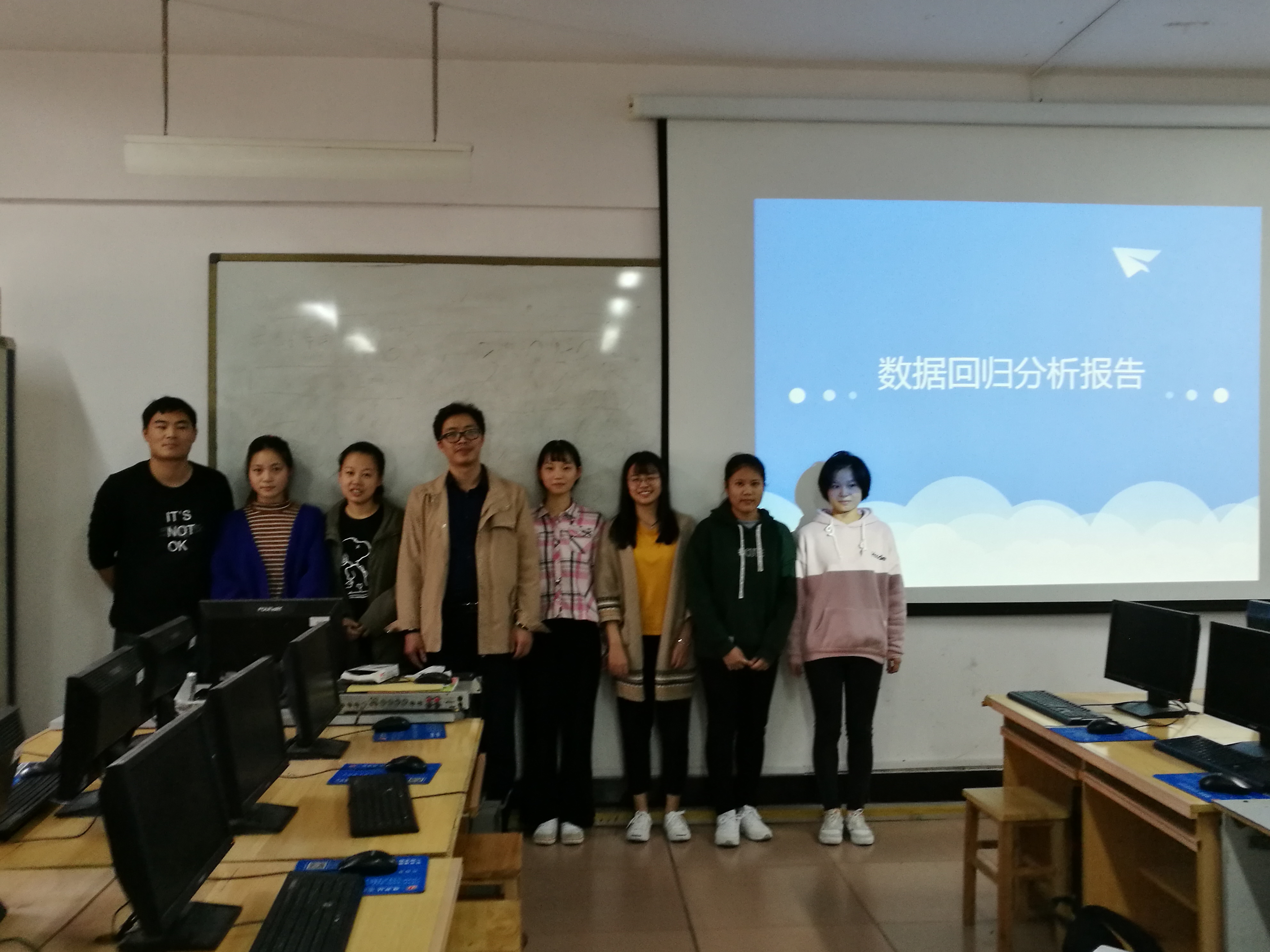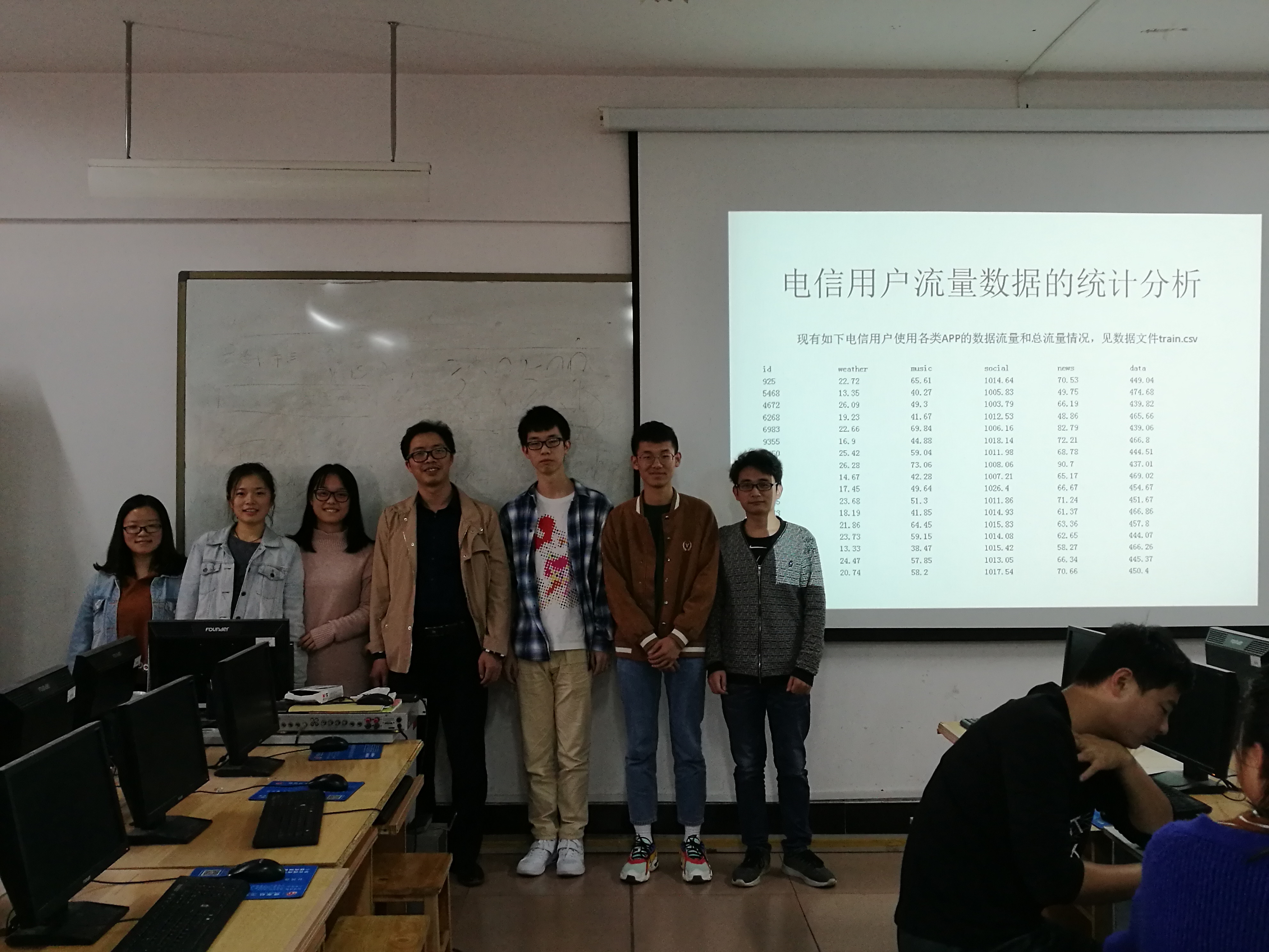 10月26日下午,信息与计算科学专业校内实习组在实验室主任何帆老师的指导下,在实习实验室7个小组分别进行了实习成果汇报,各小组汇报人把本组实习的主要成果进行了展示。本次校内重点实训项目是基于电信业务相关数据的统计分析,各组分别从不同的角度对相关数据做了统计分析,建立相关模型,对模型求解,得出了相关结果,并对结果进行检验。指导老师何帆在各组汇报后进行了提问与点评,并对本次实习做了总结。
