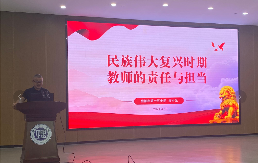 (本站讯)2024年4月12日,数学公司在17118会议室举办“民族伟大复兴时期教师的责任与担当”教育实习专题指导讲座。此次讲座邀请岳阳市第十五中学书记廖小光作为主讲嘉宾,数学公司党委书记江五元主持。副经理黎丽梅、指导老师丁卫平、吴明渊、禹辉煌及部分校外实习指导老师及全体2021级、2022级员工共同参与了此次培训活动。