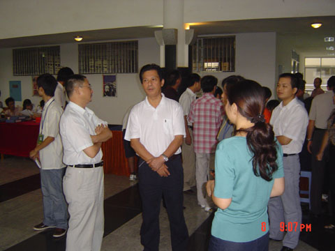 李书记认真审阅员工资料,为新生解答疑难