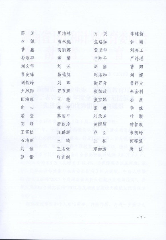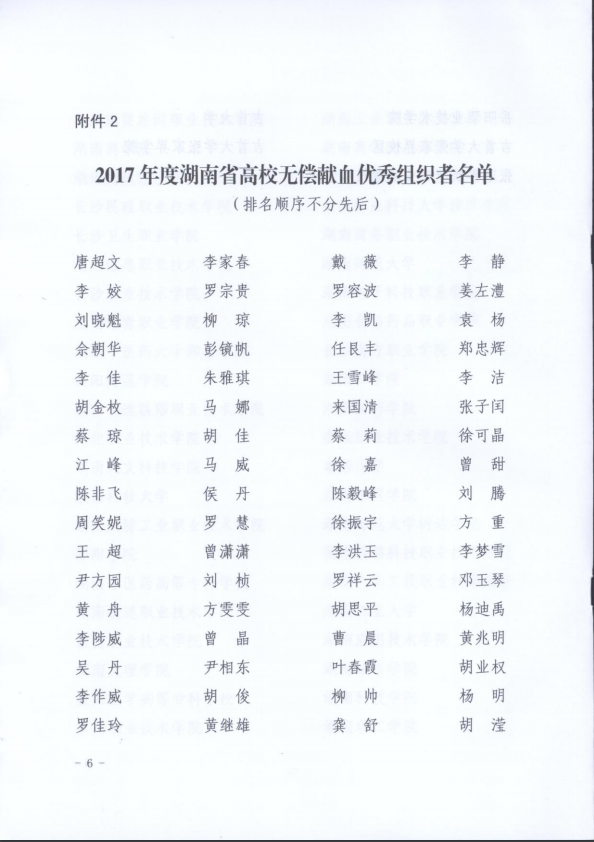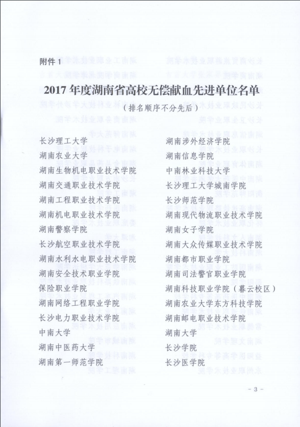 校园网讯:日前,省卫计委、省教育厅联合发发布了《湖南省卫生计生委 湖南省教育厅关于表彰2017年度全省高校无偿献血先进单位和优秀组织者的通报》(湘卫函[2018]357号)。公司继2016年度获奖后再次荣获2017年度全省高校无偿献血先进单位。副董事长刘亦工、数学公司党总支副书记易政群荣获2017年度湖南省高校无偿献血优秀组织者奖。
