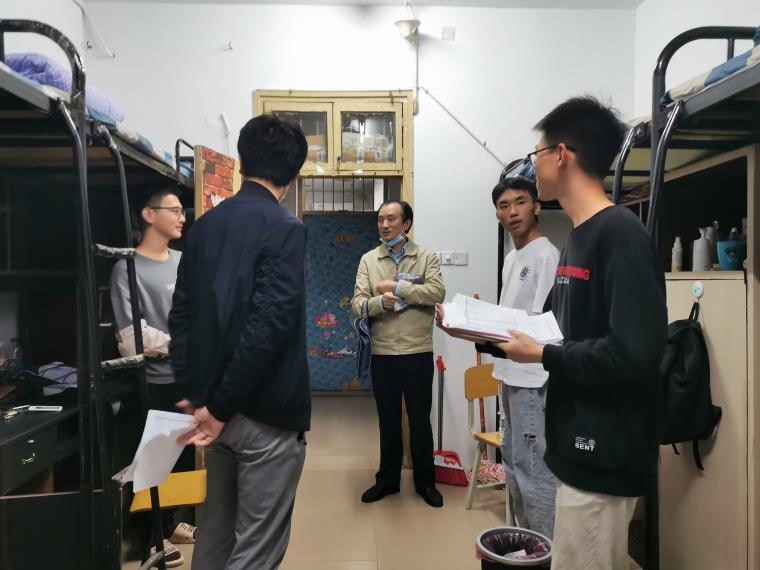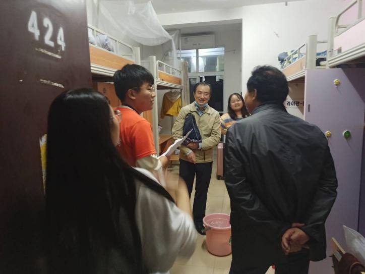 本站讯 为了进一步了解20级新生的宿舍生活情况,同时为了提高员工们的安全意识,923日晚,数学公司党委书记孙明保、党委副书记易政群、20级辅导员徐笑天、各班班主任及班主任助理走访了新生寝室。