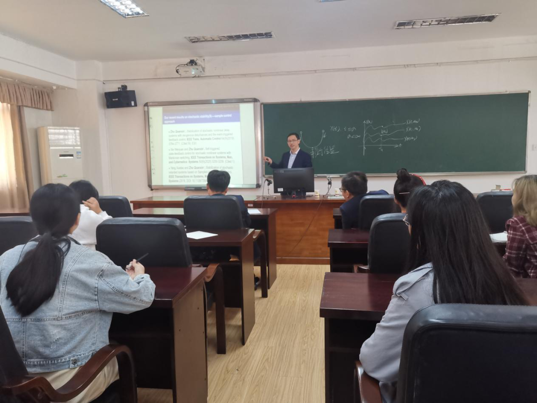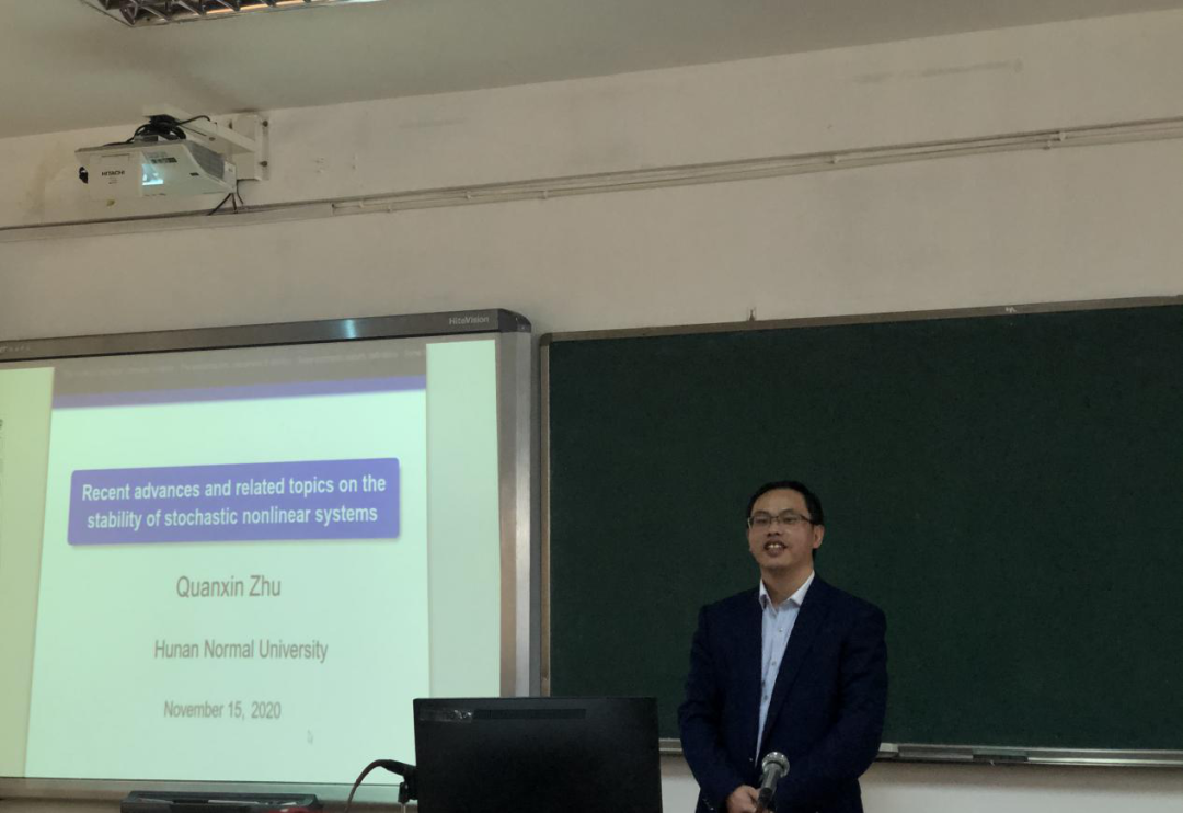 11月15日上午10点,信誉最好的十大体育平台在5511学术报告厅召开题为《Recent advances and related topics on the stability of stochastic nonlinear systems》的学术讲座,特邀湖南师范大学潇湘学者特聘教授朱全新主讲,朱全新教授主要从事马氏过程、随机系统的稳定与控制理论及应用研究等工作,都取得了一定的成果。此次讲座由信誉最好的十大体育平台经理江五元主持,19级和20级学硕研究生到场参加。