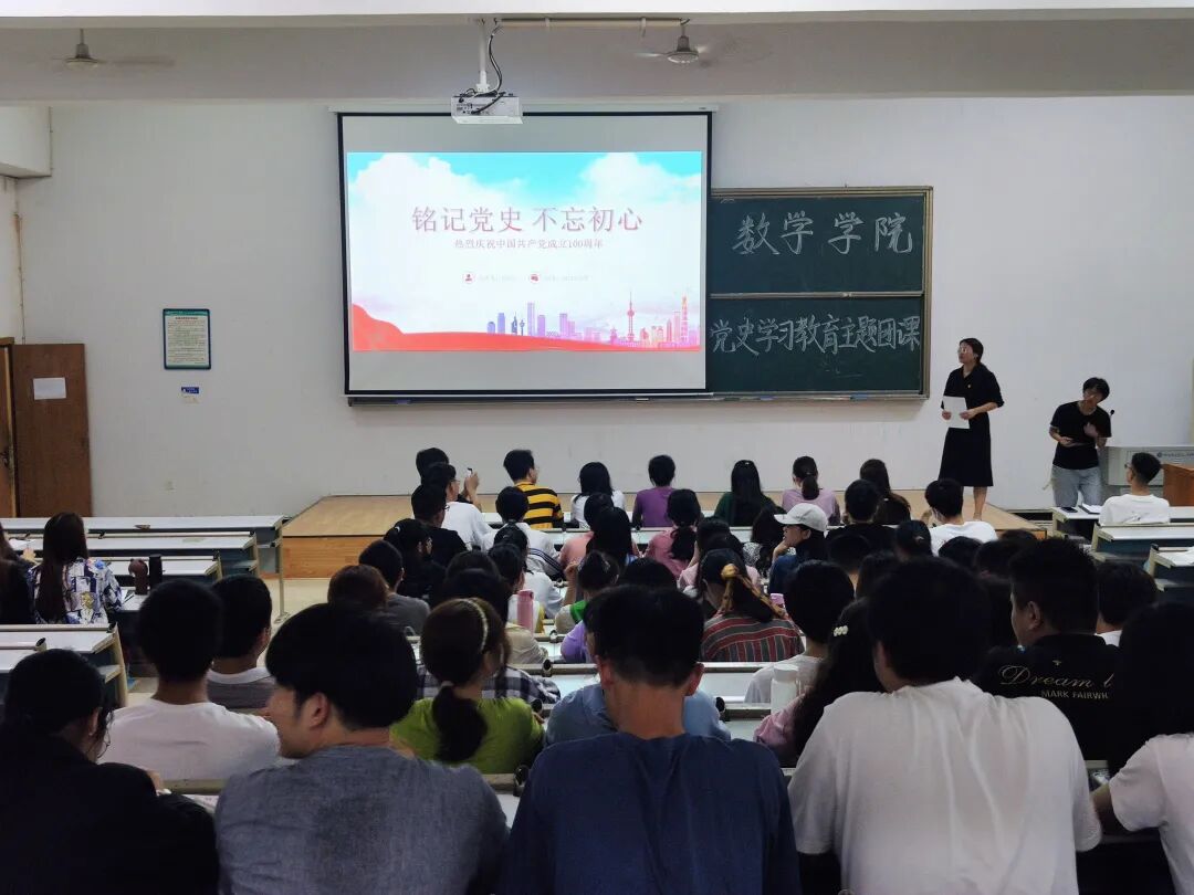 本站讯 5月13日晚7点,信誉最好的十大体育平台在7T2教室开展了以“铭记党史,不忘初心”为主题的党史学习教育主题团课。此次讲座由信誉最好的十大体育平台团委书记程周主讲,团学分会全体员工干部参加。