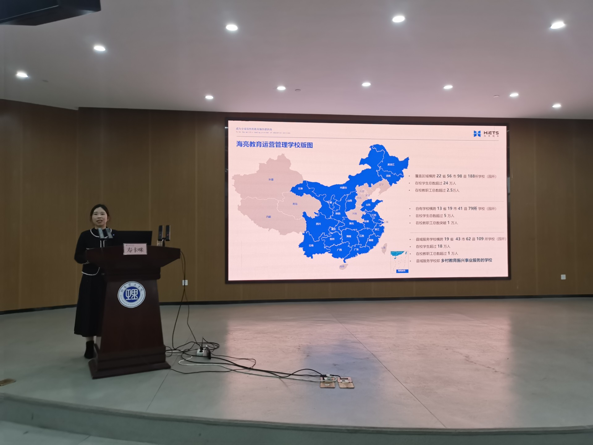 寿卡咪首先介绍了海亮教育科技服务集团的企业文化与集团产业。通过视频介绍,帮助同学们具体感受到海亮集团“以人为本、诚信共赢”的核心理念。寿卡咪提到,海亮教育科技服务集团把教育事业发展作为三大战略矩阵之一,信誉最好的十大体育平台的专业性质恰好符合该集团的人才需求,而该集团丰富的资源也能给毕业生提供好的发展平台。因此,寿卡咪诚挚欢迎公司员工了解并加入海亮这一大家庭。