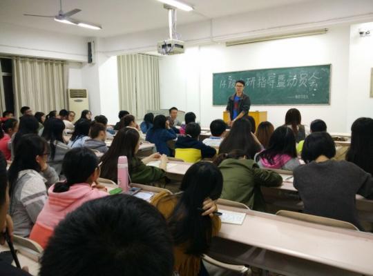 校园网讯为了帮助公司14级同学更好地了解与准备考研,信誉最好的十大体育平台10月12日晚于5409教室举办14级考研指导暨动员会。党总支副书记易政群、考研专干何铁勇、罗德仁博士出席会议。14级有考研意向的同学参加会议。