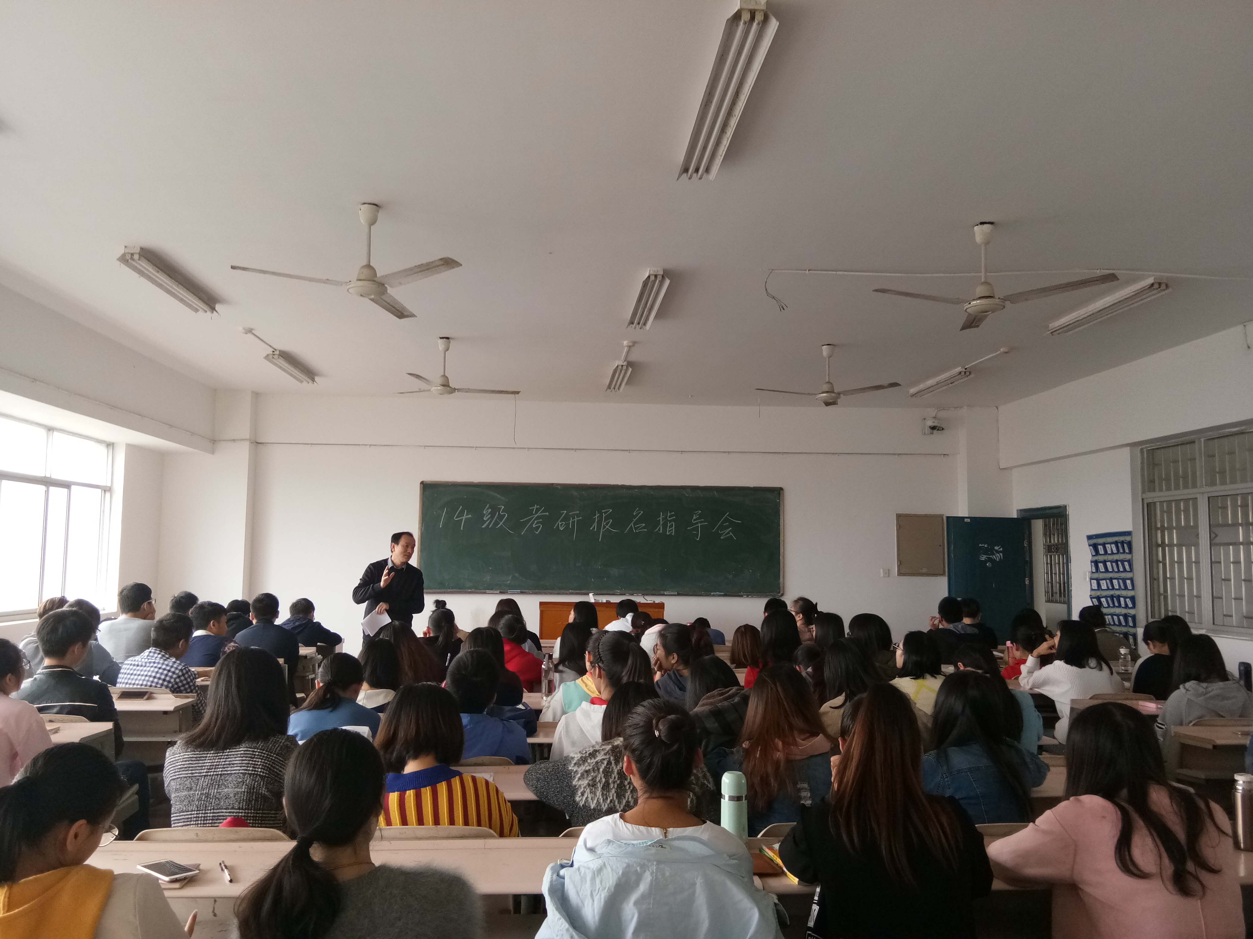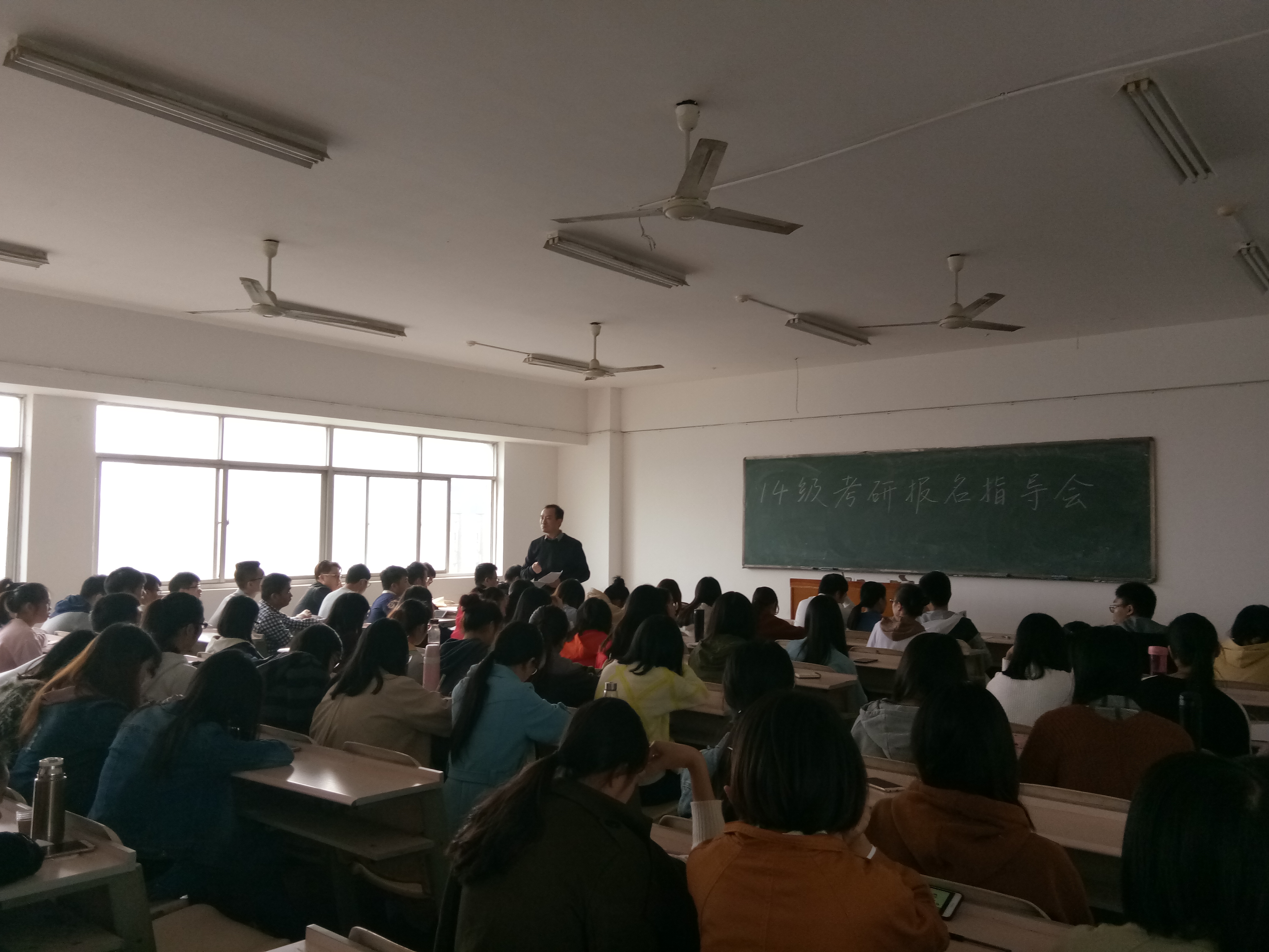 2017年10月23日下午14:30,信誉最好的十大体育平台举行“2014级考研报名指导会”。信誉最好的十大体育平台经理孙明保,党总支副书记易政群出席。2014级两个专业共计83名报考研究生同学参加。指导会由考研专干何铁勇主持。