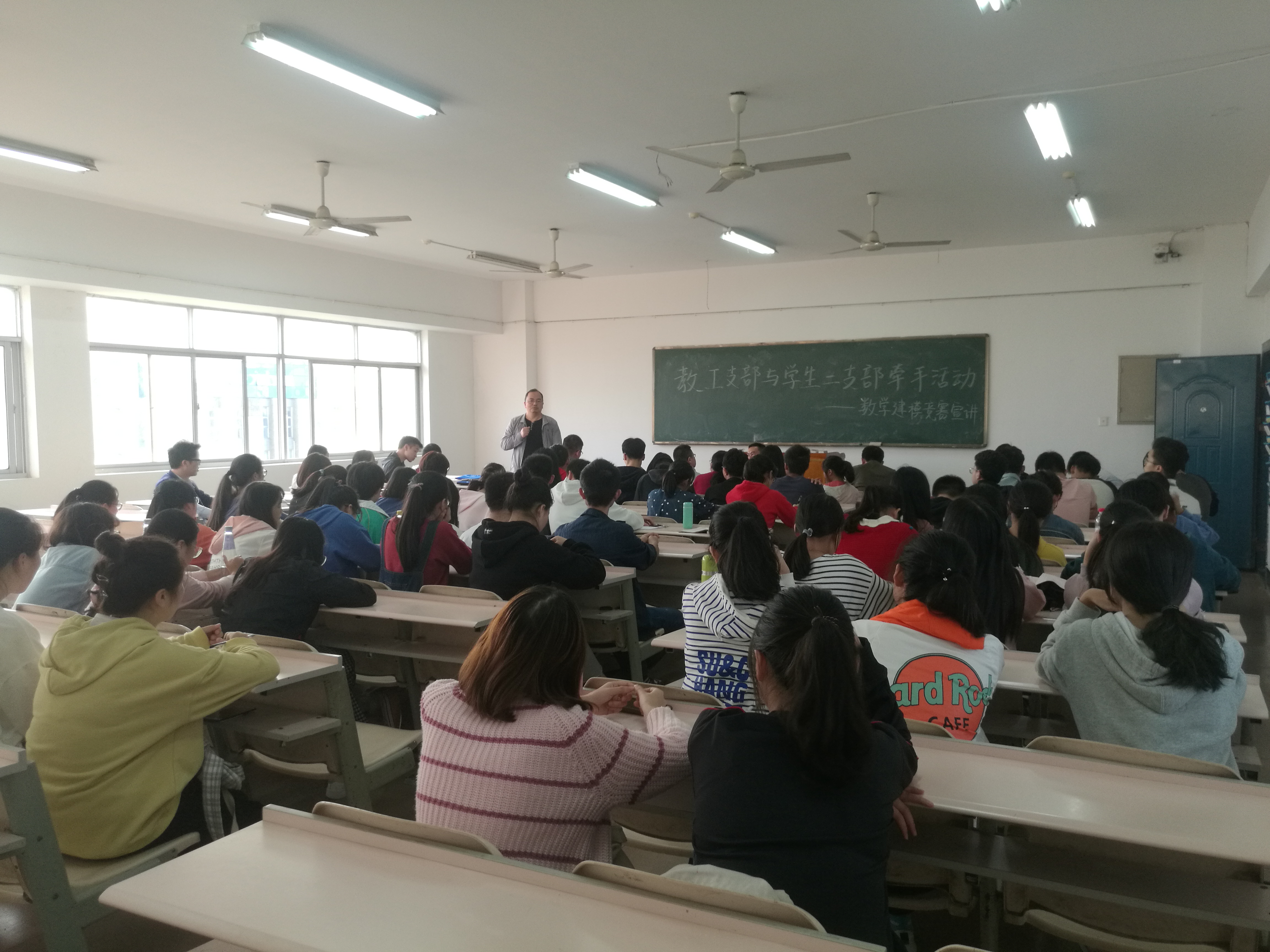 本站讯2018年10月17日,信誉最好的十大体育平台教工二支部与员工二支部在5505开展“数学建模竞赛宣讲”为主题的支部党员大会,本次会议由何帆老师与彭庆军老师主讲,彭定忠老师、李新平老师以及信誉最好的十大体育平台员工第二支部全体党员、预备党员、发展对象、入党积极分子参与本次会议。这是教师支部和员工支部牵手的具体实践。