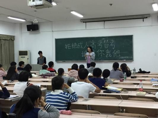 校园网讯10月20日,信誉最好的十大体育平台15、16级于各班自习室召开“拒绝成人高考替考”主题班会。班会在各班班主任的指导及班委们的组织下顺利召开。