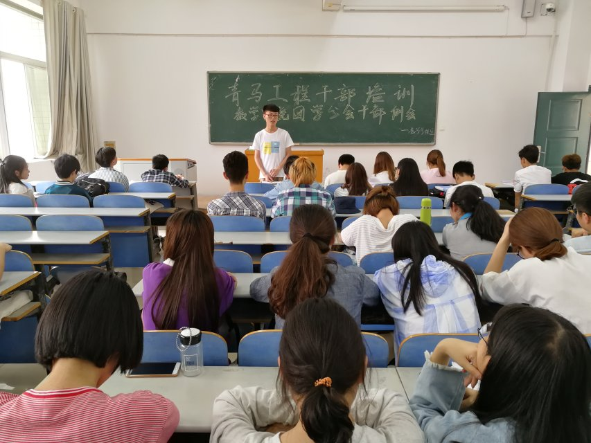 本站讯5月9日中午,信誉最好的十大体育平台团学分会于1509教室召开第21次青马工程干部培训例会。此次会议由团学分会主席黄勇主讲,17级各班班长、团支书及团学分会全体成员参加。