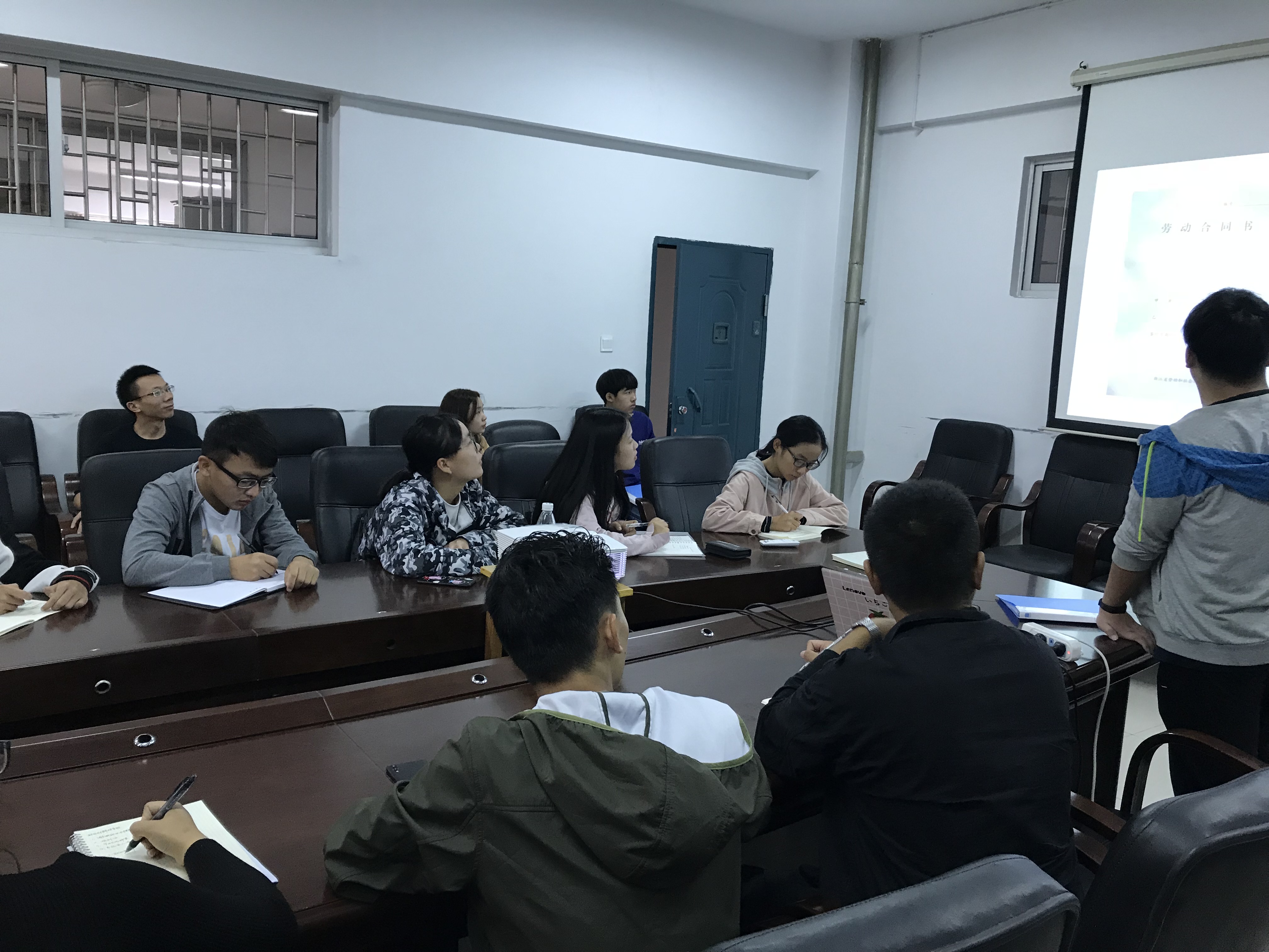 毕业生联络组主要工作内容特殊毕业生帮扶、就业调研与统计和暑假员工返校接待。陈志宇同学就以上内容进行了讲解。他认为员工联络不仅能够加强员工与公司的联系,而且对公司的发展有很好的促进作用。同时员工信息涉及员工隐私,大家务必要有高度责任心和保密意识与能力,确保员工联络工作的安全。