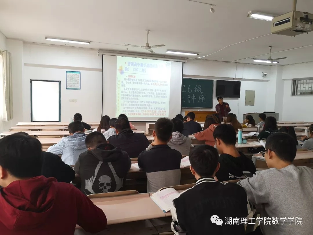 本站讯 10月16日下午,为了加深同学们对数学教育的了解,信誉最好的十大体育平台于5403教室举行论述题专项讲座。讲座由李松华老师主讲,16级数学与应用数学师范专业全体员工参加。