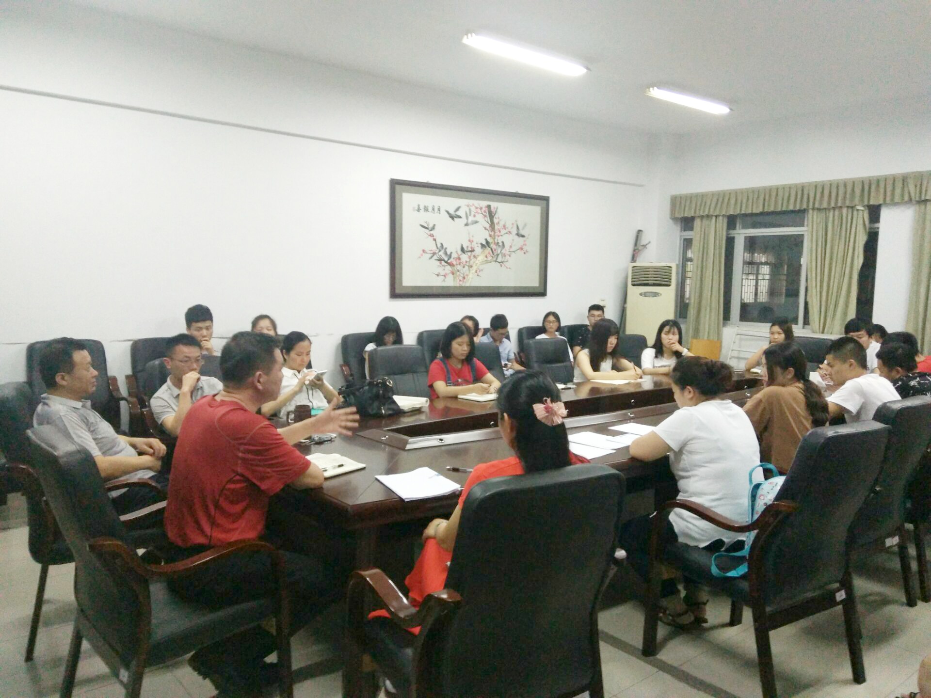 傅老师向同学们介绍了“建行杯”第三届“互联网+”老员工创新创业大赛的相关信息。阳书记对“互联网+”做出详细解释,为了引导同学们更好了解“互联网+”,他结合公司无偿献血团队,提出“互联网+”公益创业等建议。易书记讲到本次大赛对我们当代老员工有着非常重要作用,是一个很好的锻炼自我的机会,希望每位同学能把握机会,积极参与其中。