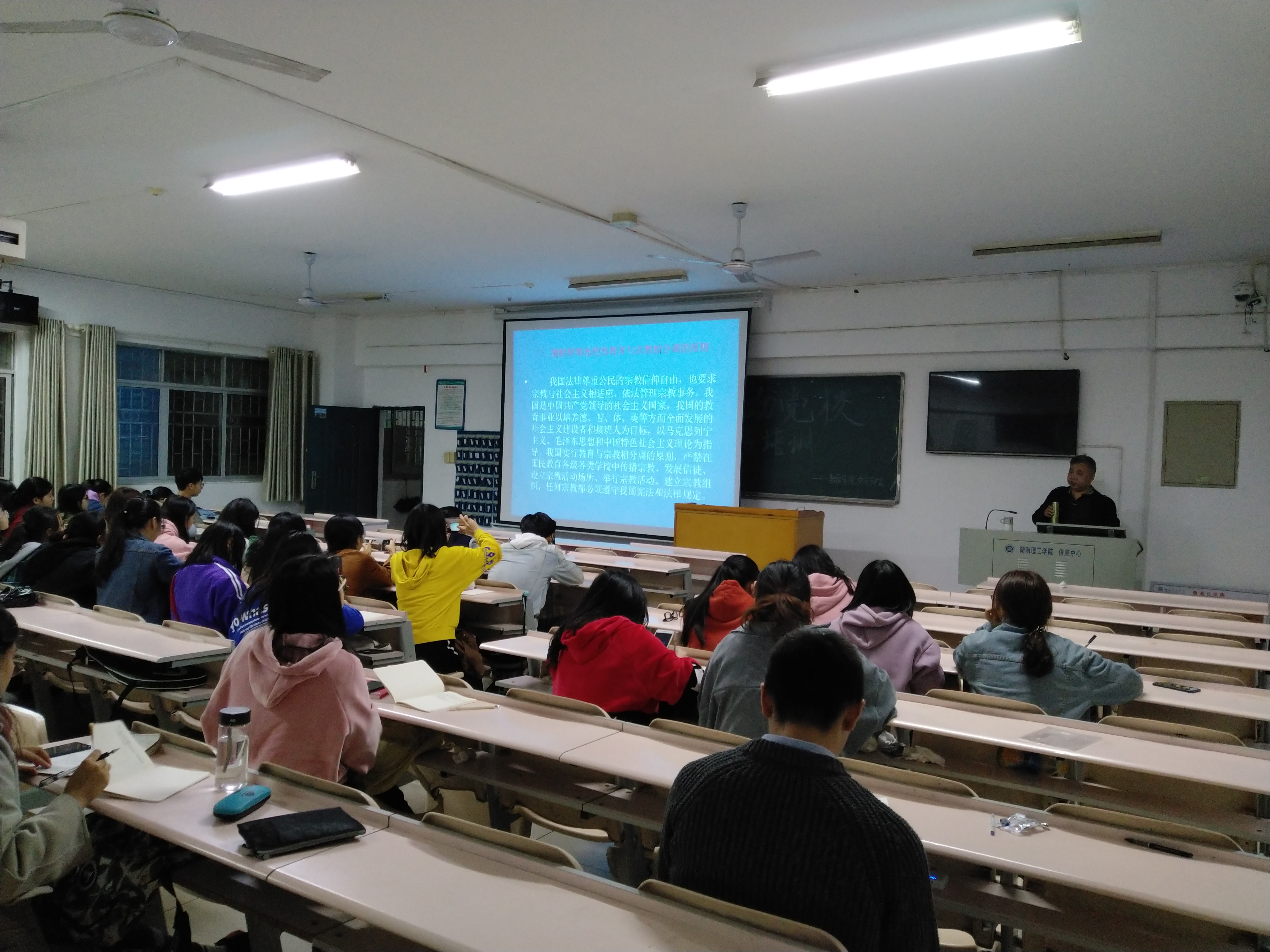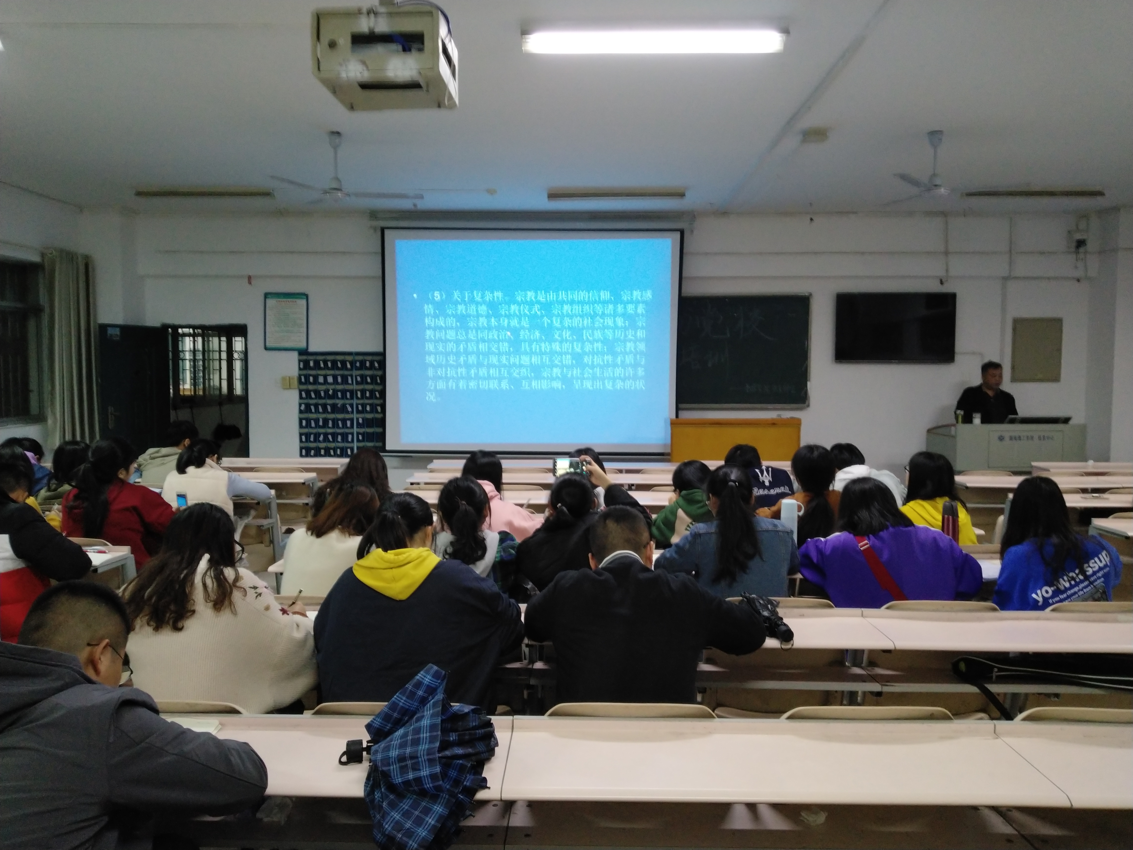 首先,党总支负责人介绍了我国宗教的基本情况。我国是一个多宗教的国家。到新中国成立前,逐步形成了以佛教、道教、伊斯兰教、天主教、基督教等五大宗教为主体,兼有少数其他宗教和多种民间信仰的基本格局。