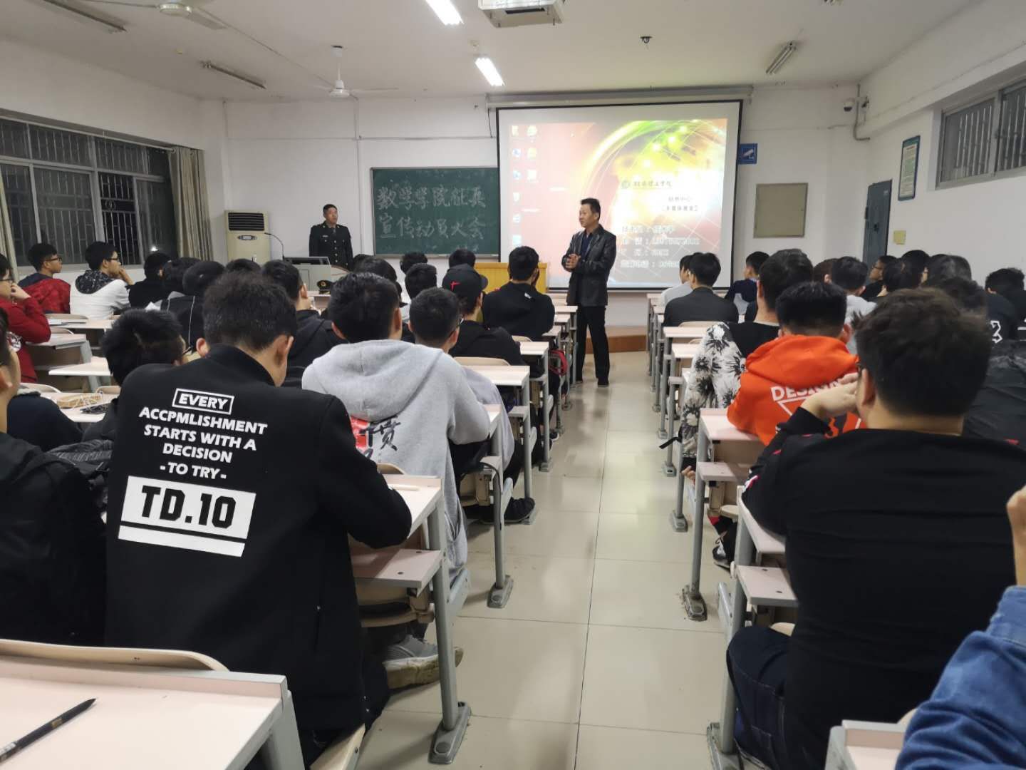 本站讯 4月11日晚上7点,信誉最好的十大体育平台在5404、5408教室开展了征兵动员大会,数学公司党总支副书记易政群老师,张琰、梅傲寒等部分有参军经验的学姐学长出席会议,17级部分员工代表以及18级全体男生参与会议。