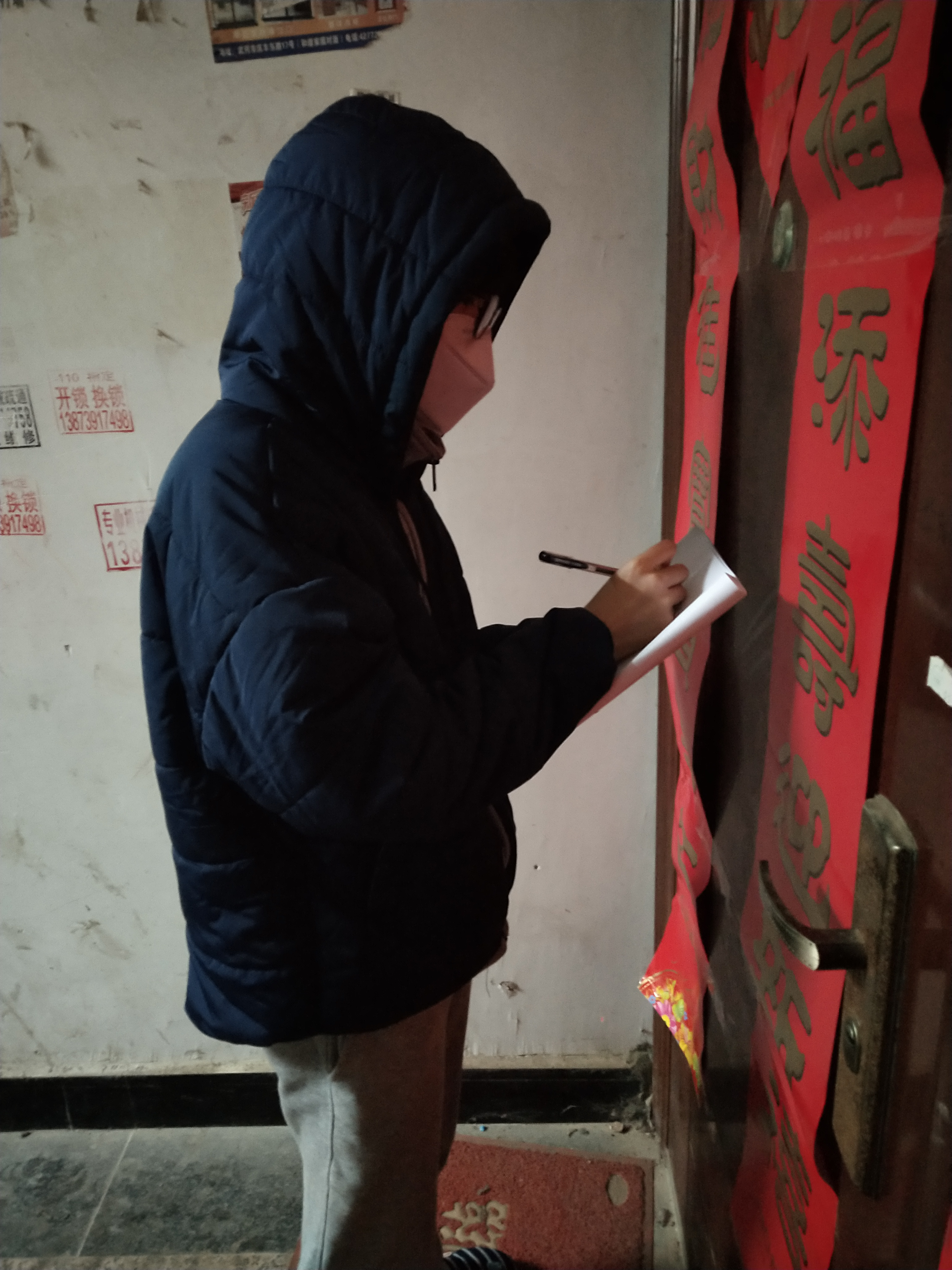 周艳玲同学的工作地点为湖南省祁阳县肖家镇太平村及九牛坝村,她为村民宣传疫情注意事项并登记进出人员。在工作期间,工作人员带领她给村民分发《新型冠状病毒感染的肺炎防控温馨提示》等宣传材料,并讲解疫情防控措施。