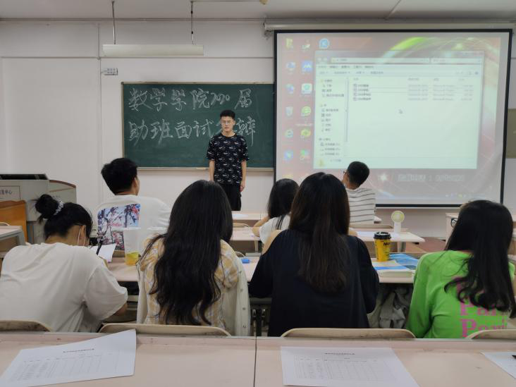 面试开始,各助班候选人通过PPT展示,向评委进行自我介绍并陈述竞选助班的原由。在自我阐述过程中,面试者们着重表述自身能够胜任助班的原因及作为助班所要负责的重点。候选人们衣着端正,保持着谦逊态度,让评委们感受到他们的信心与决心。