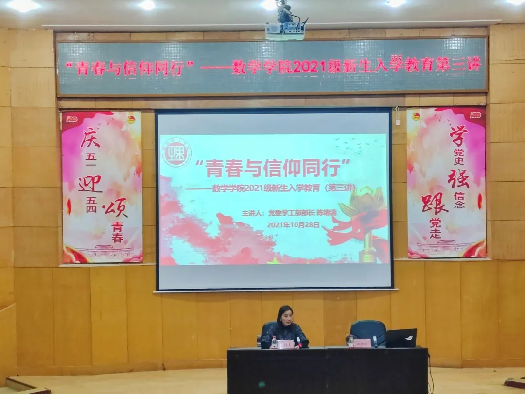 本站讯 为坚定21级新生理想信念,10月28日,“青春与信仰同行”—2021级新生入学教育第三讲于综合楼学术报告厅举行。本次活动由党委学工部部长陈绪清主讲,信誉最好的十大体育平台经理周小强、党委副书记齐亮菲和各年级辅导员出席,21级全体新生参加。