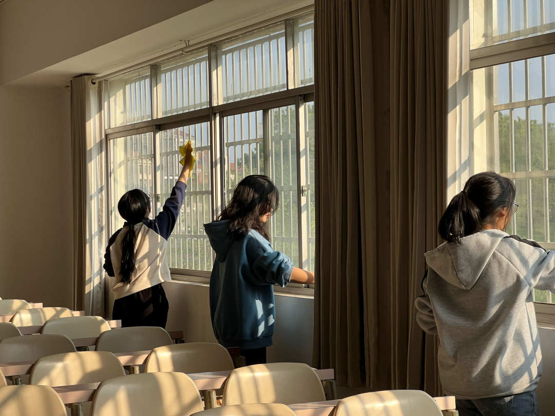 本次公司劳动教育实践课程的任务是对规定劳动区域公共区域的全面清扫。劳动开始,员工以班级为单位按任务安排表对负责区进行清洁,包括所有开放教室、楼梯间、走廊、扶手等。各班级又划分小组,以保证对负责区域的全方面,高质量清洁。小组之间分工明确,认真负责,并针对难处理、费时间的卫生难题,制定了一系列对策,切实做到了地面一尘不染,教室窗明几净,校内的公共环境得到改善。