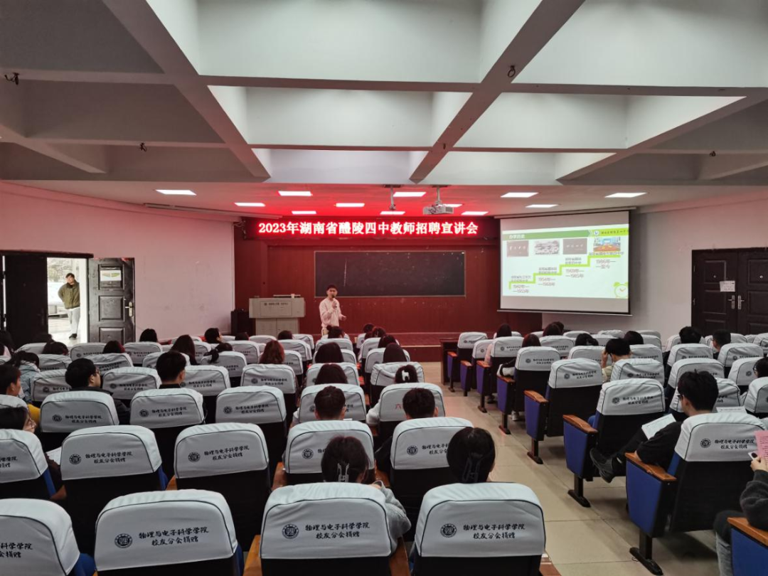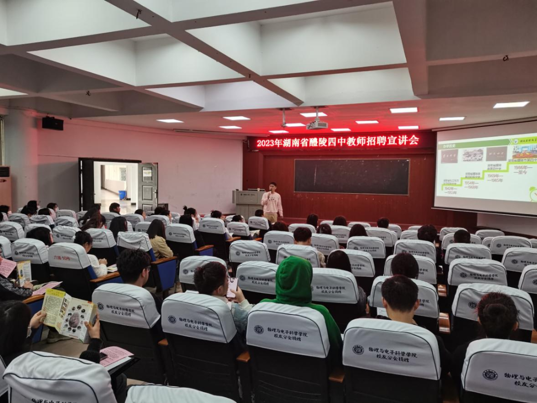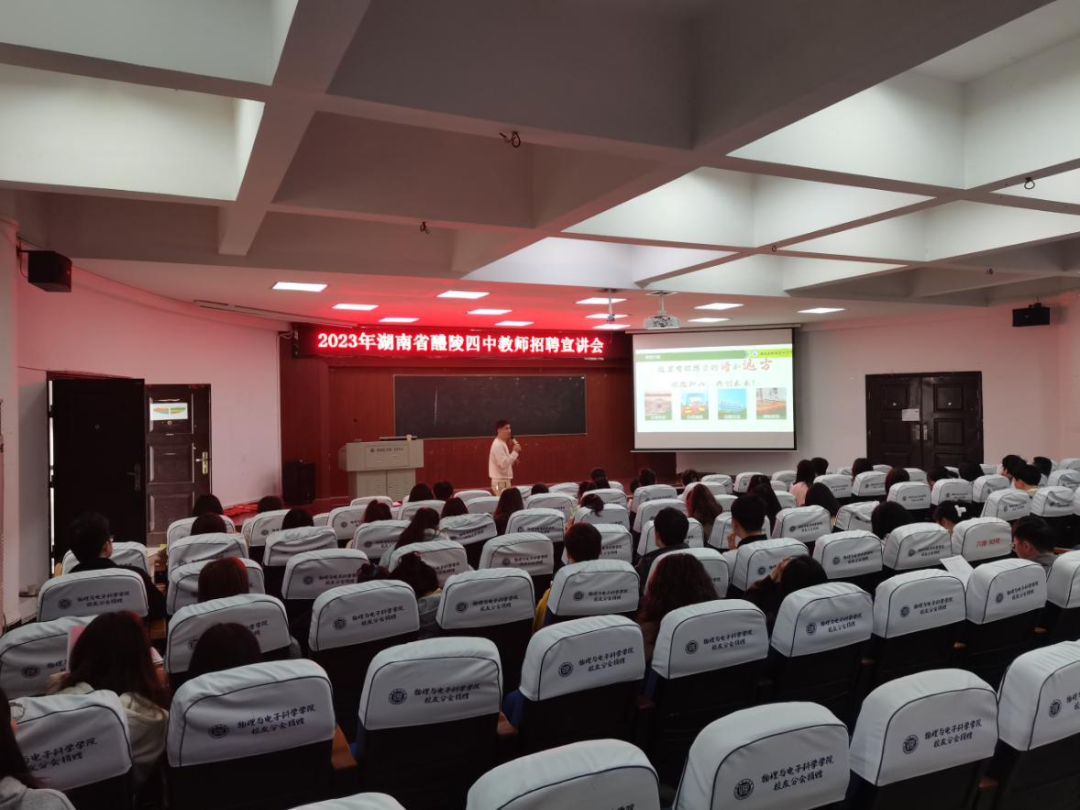 本站讯 3月7日上午,2023年教师招聘宣讲会——醴陵县四中专场于6栋学术报告厅顺利召开,醴陵县四中校园招聘负责人出席,公司多名毕业生参加会议。