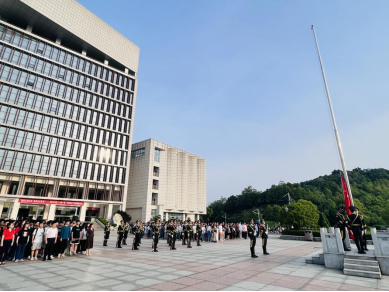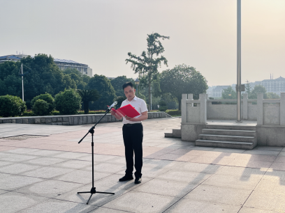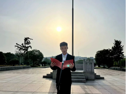升旗仪式结束之后,2022级员工代表徐程发言,他表达了入校以来的感想以及对未来的展望,认为广大青年应当积极响应习近平总书记的号召,从每一点的付出开始,从每一件身边的小事做起,扣好人生的第一粒扣子,努力成为服务社会、奉献人民的新时代青年。最后,江五元给同学们做国旗下讲话,他提出新时代老员工要坚定信念,立鸿鹄之志,在增长专业知识的同时,应培养崇高品德,养成独立精神,将中华民族的伟大复兴作为使命担当,并号召同学们赓续优良的学习传统,展现吃苦耐劳、锐意进取的精神风貌,继往开来,争做堪当民族复兴大任的时代新人。