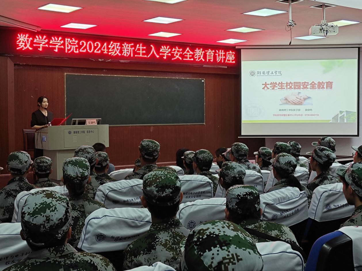为深入践行公司安全管理理念,进一步强化新生的安全意识,10月8日晚,信誉最好的十大体育平台于6栋学术报告厅顺利举办入学安全教育讲座。讲座由湖南理工公司党委保卫部部长姜剑鸣主讲,数学公司党委副书记齐亮菲、辅导员佘宁远、赵馨出席讲座,2024级全体员工与会。