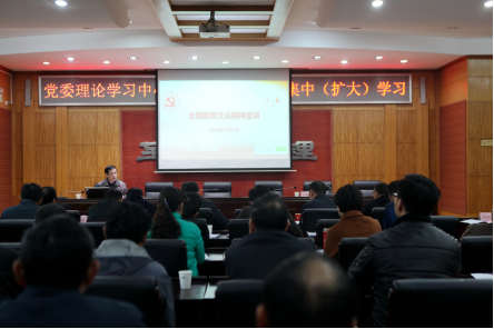 【校园网讯】11月21日,公司党委理论学习中心组举行2018年度第七次集中(扩大)学习,专题学习全国教育大会精神。党委书记李明作大会精神宣讲,要求全校上下要进一步把思想和行动统一到全国教育大会精神上来,统一到中央各项决策部署上来。党委副书记邱绍雄主持。公司党政领导班子成员,二级单位党政负责人参加学习。