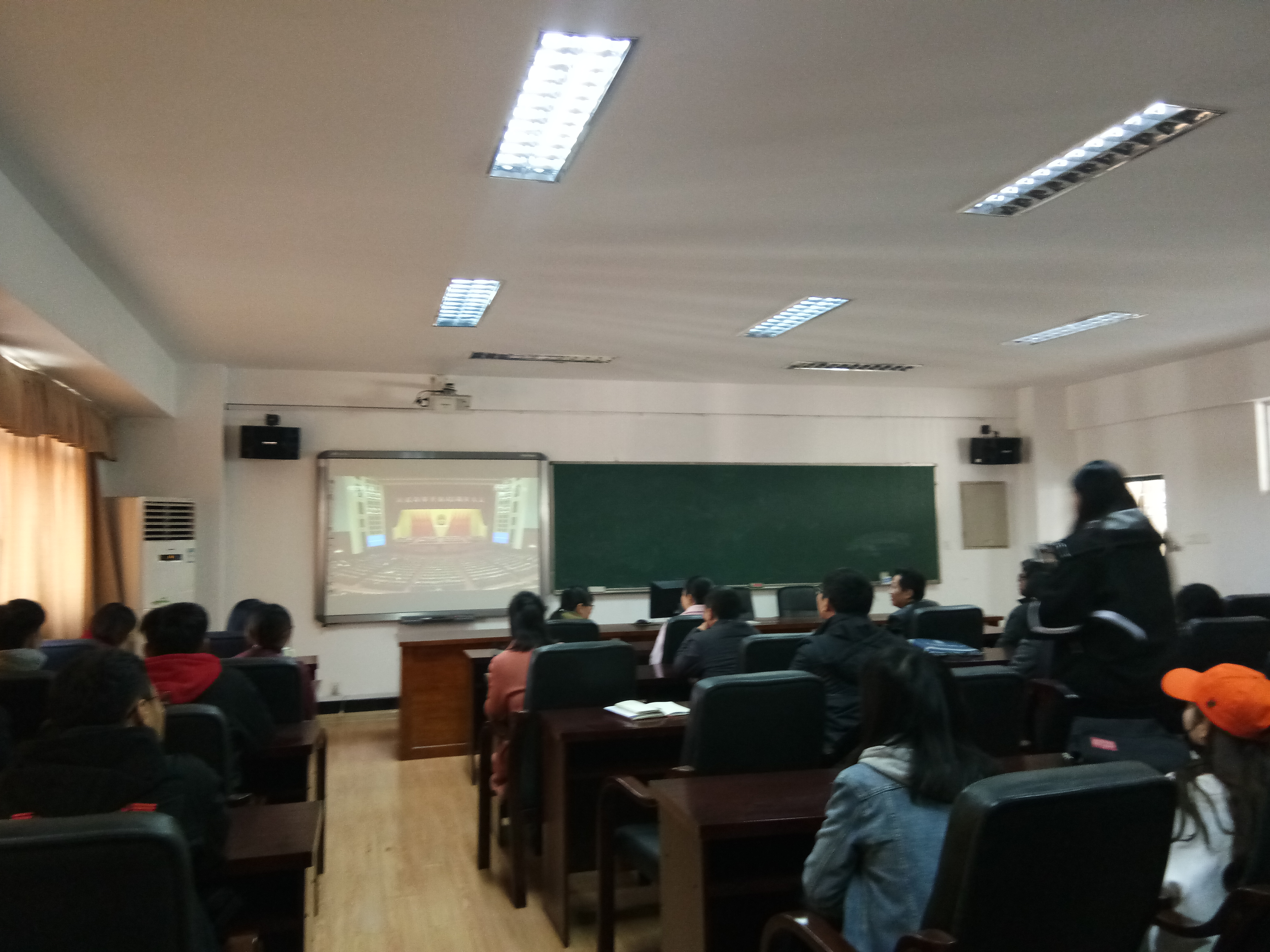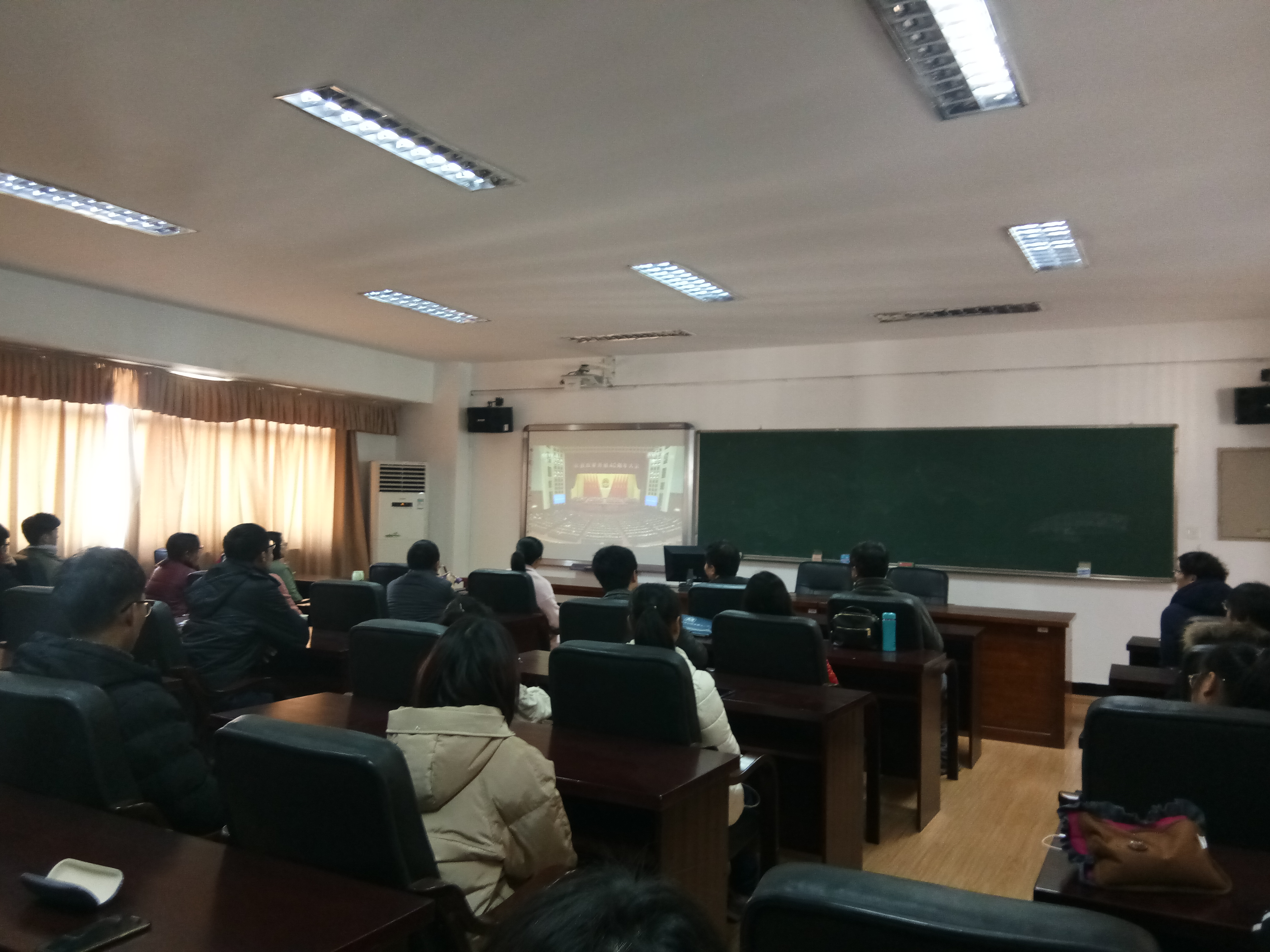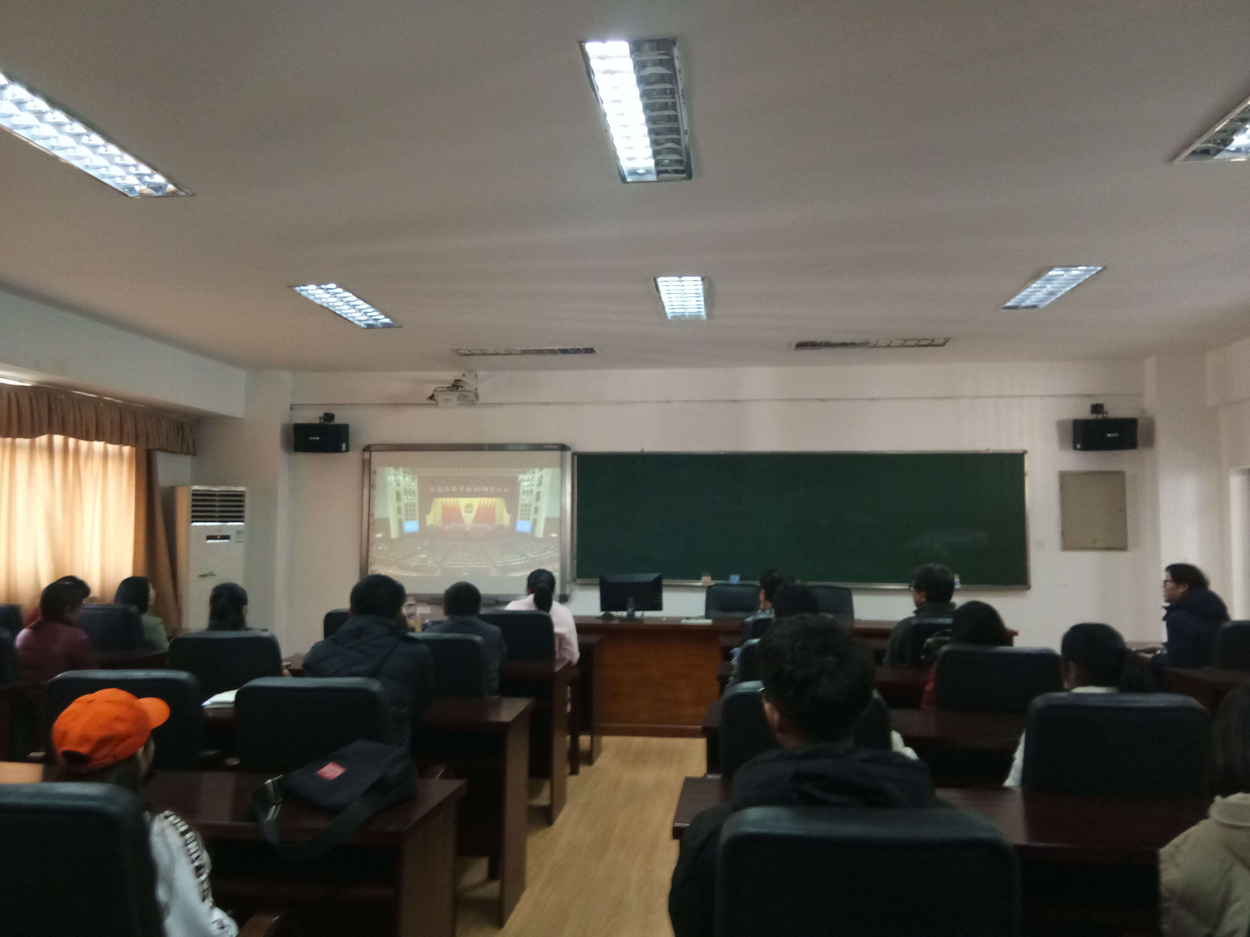 2018年12月18日上午10时,数学公司党总支组织无课的教师、员工,于公司学术报告厅5511观看“庆祝改革开放四十周年大会”现场直播。