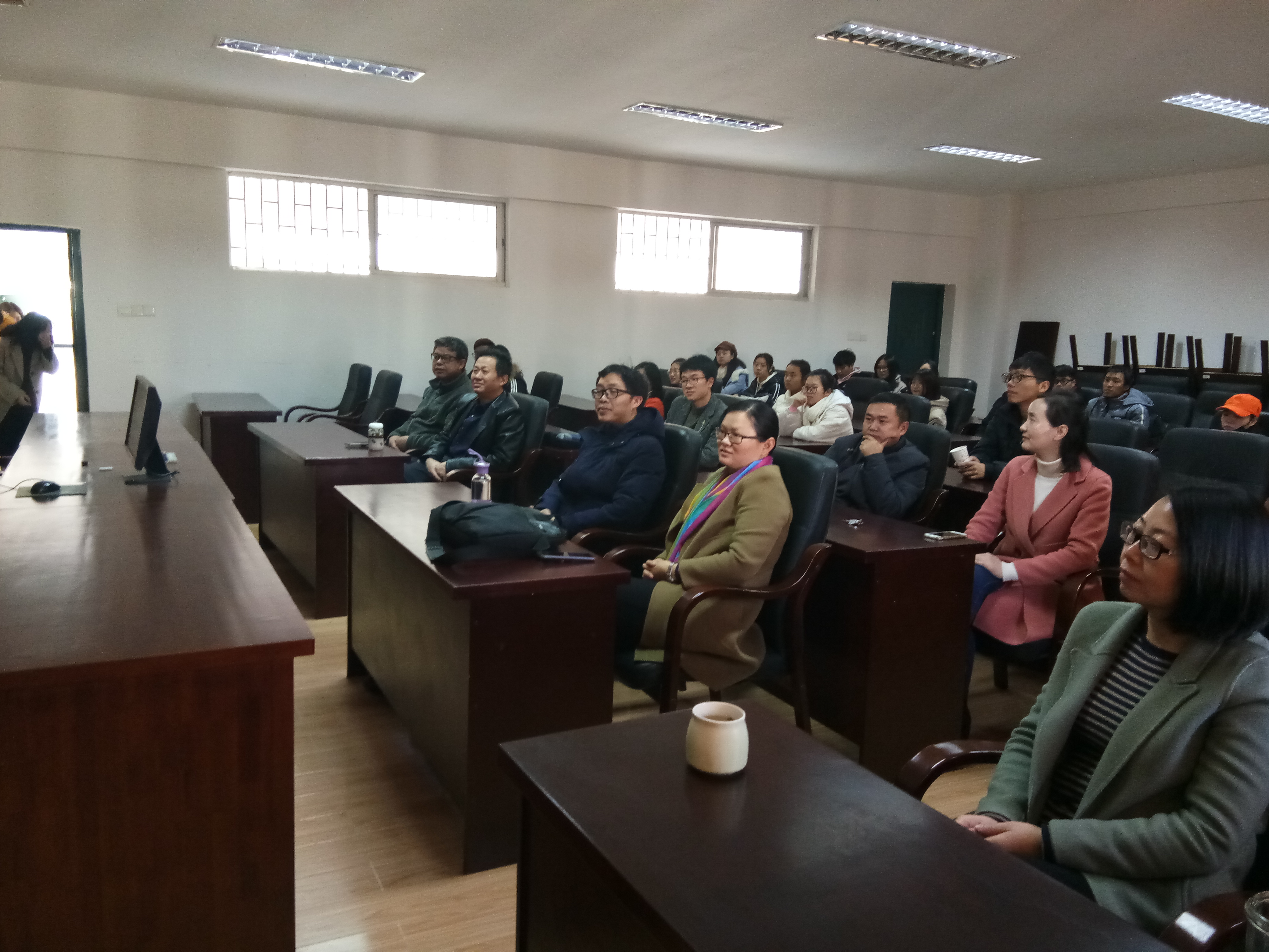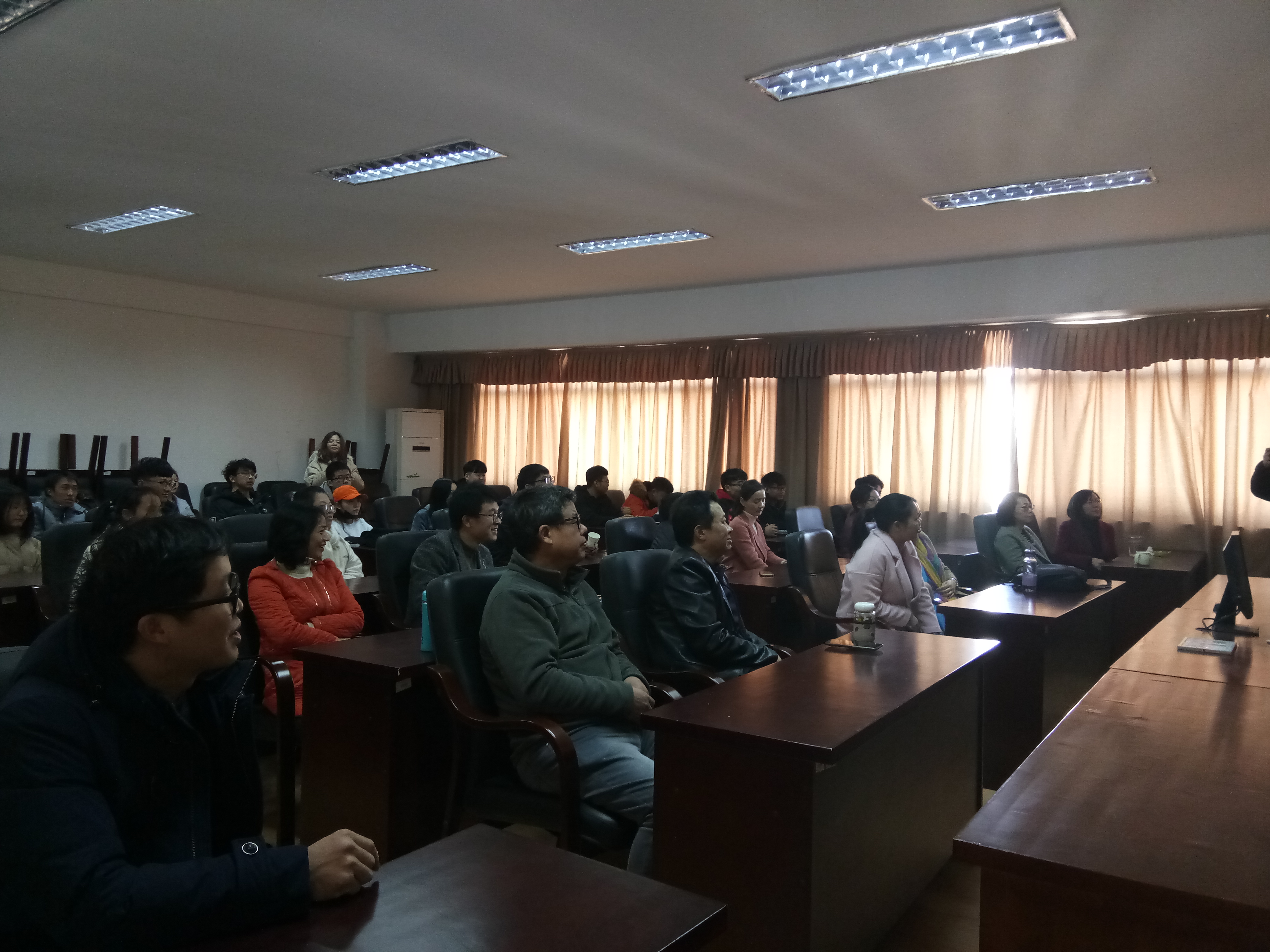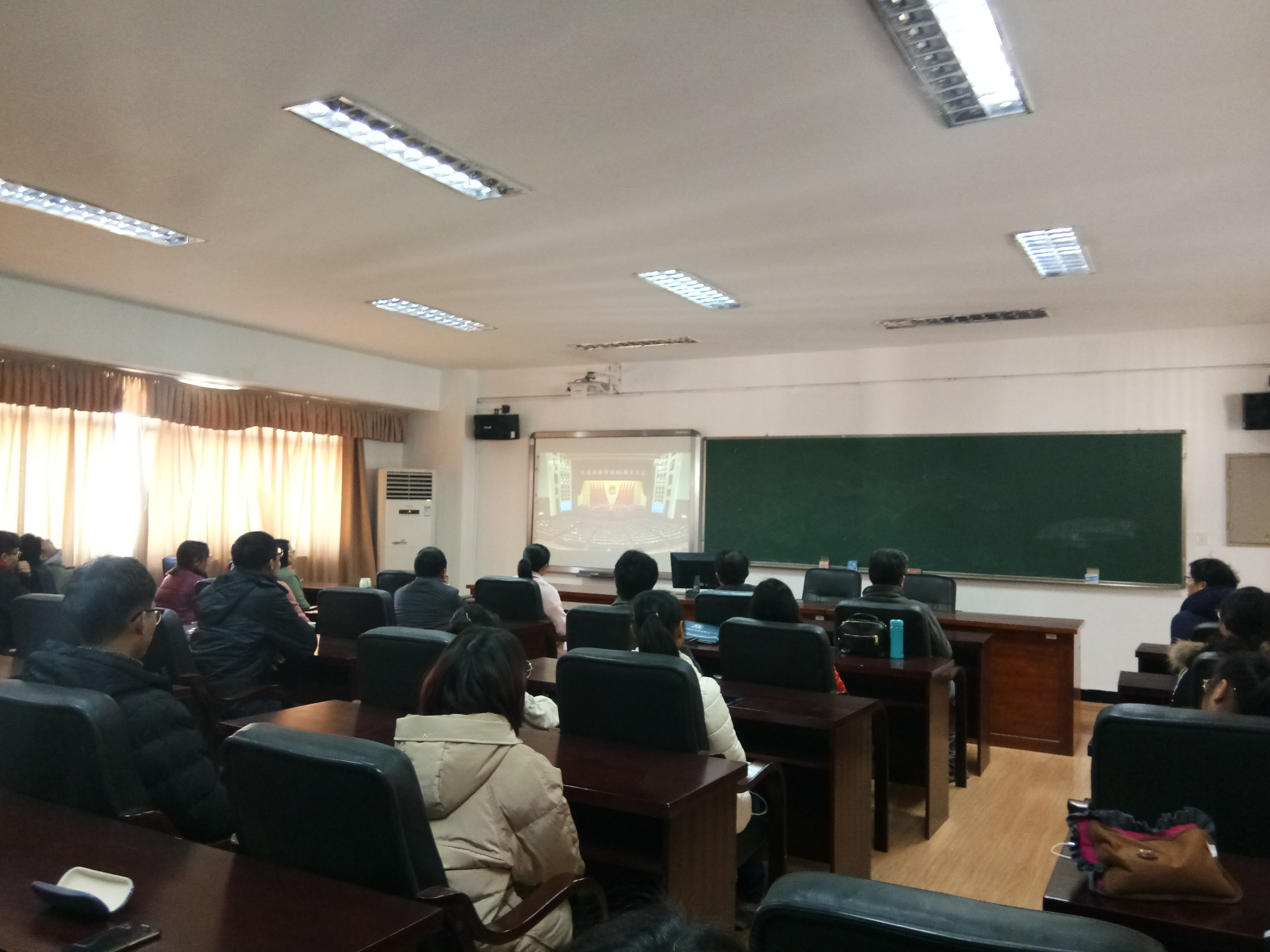 2018年12月18日上午10时,数学公司党总支组织无课的教师、员工,于公司学术报告厅5511观看“庆祝改革开放四十周年大会”现场直播。