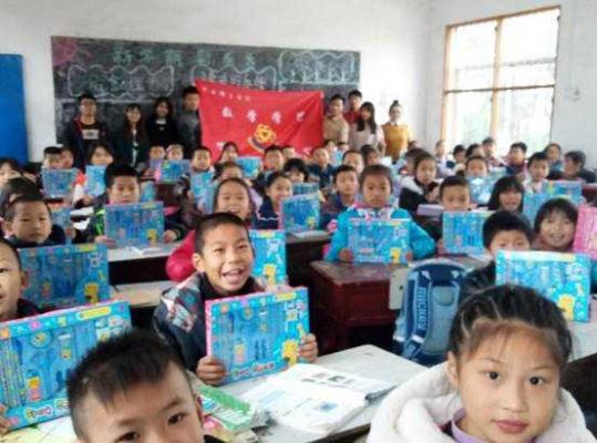 志愿队带着爱心捐赠物品到达小学,按原计划由团队四名成员为三、四年级辅导数学,之后进行游戏环节;课后,团队将一部分爱心捐赠物品分发给所带两个年级,另一部分留做各班近期诊断考试的奖品,并与员工和老师合影留念。