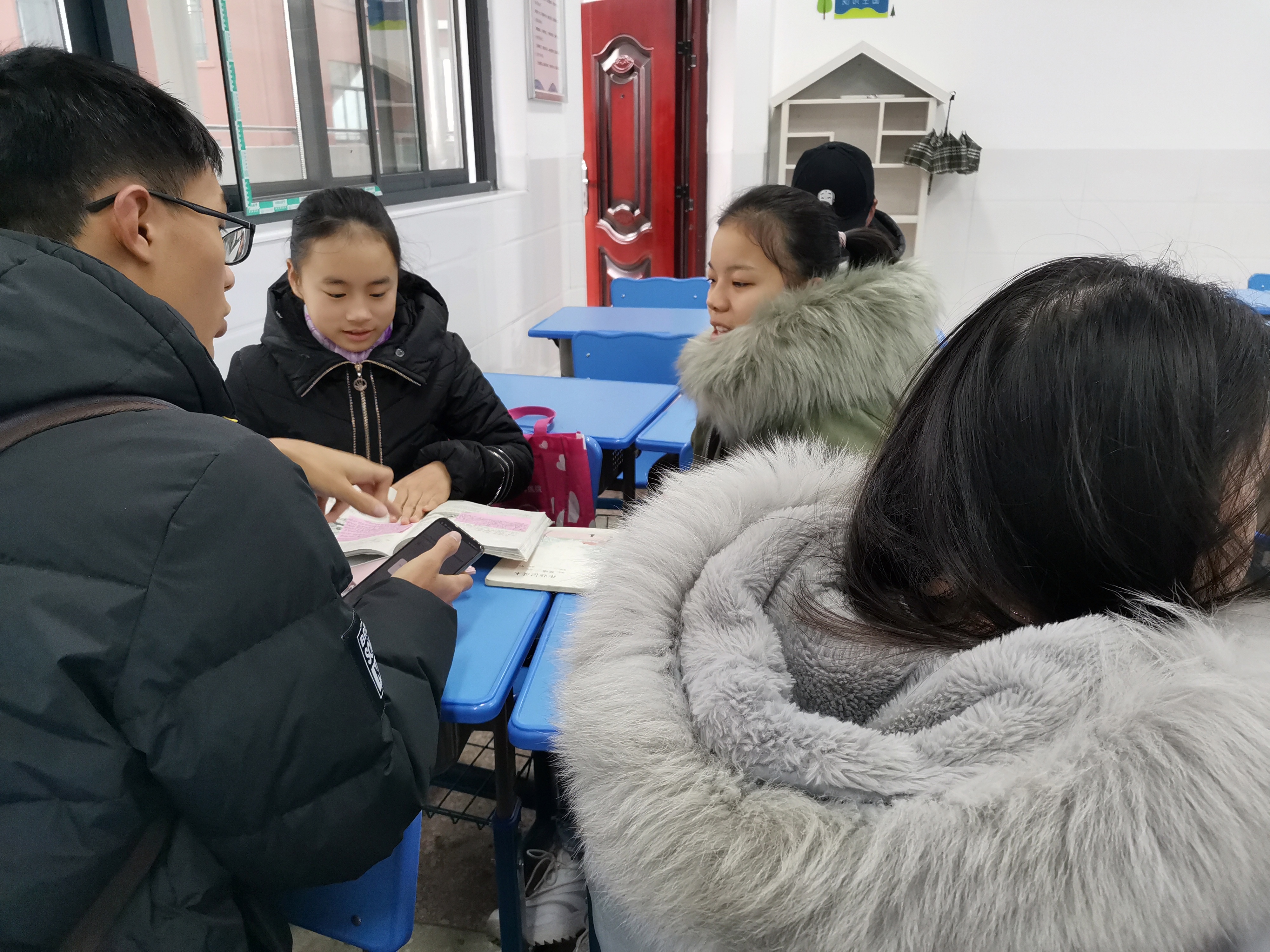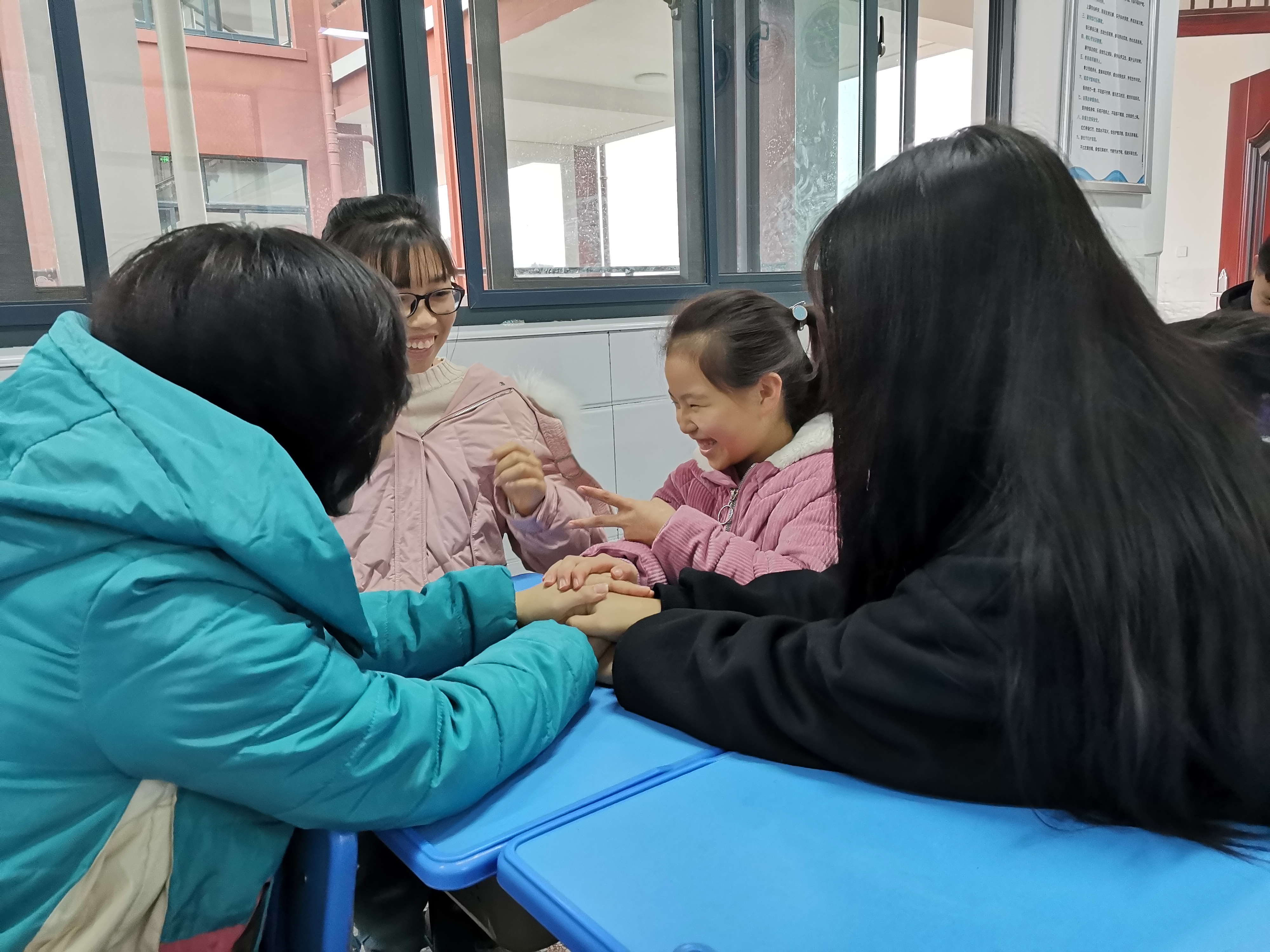 进入深冬,志愿者们依然按时来到公司后门集合,有序来到畔湖湾小学,在找到自己的配对的小朋友后,迅速进入状态。通过一个学期的接触,志愿者与小朋友已经相处得非常融洽。小朋友认真做作业和习题,志愿者在一旁指导和讲解,形成了一种浓厚的学习氛围。除此之外,志愿者还与小朋友一起画画、一起做手工、一起玩小游戏,笑声充满整个校园。
